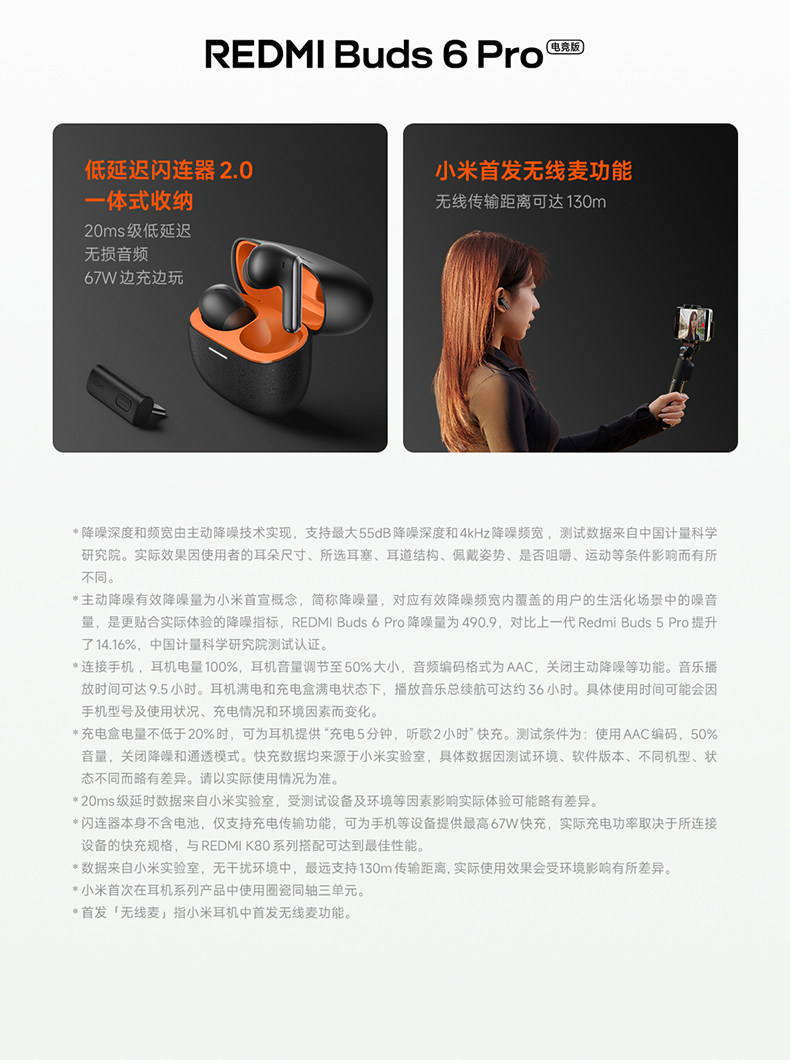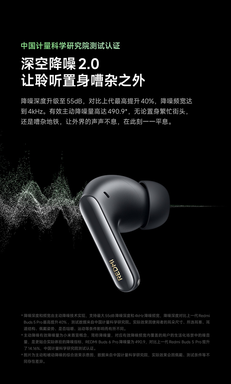 Redmi Buds6Pro 진정한 무선 소음 취소 헤드셋 52db 활성 소음 취소 휴대 전화 유니버설 24 년 새 헤드셋스토어 가기