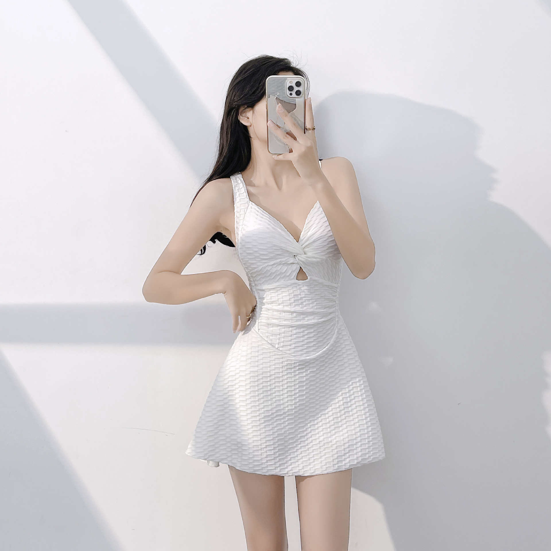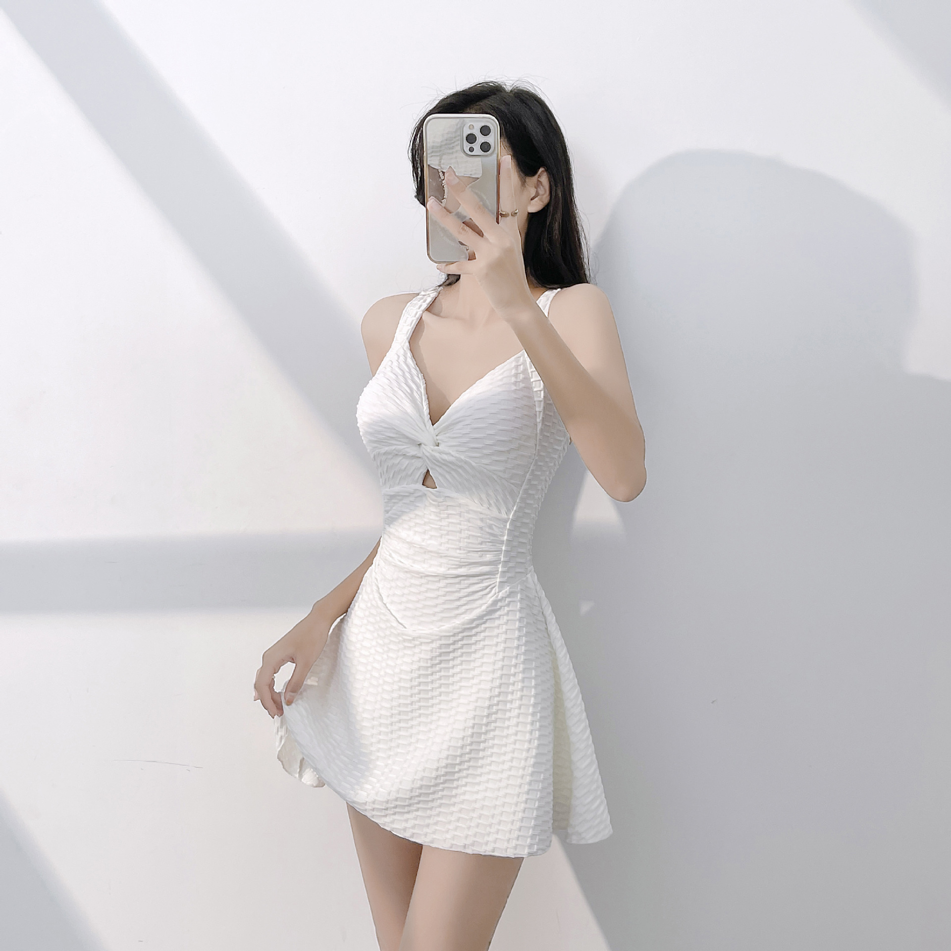 2025 신상 섹시한 여자아이 스트랩 미니스커트 소녀용 레이스 원피스 허리 조임 온천 모임용 원피스 수영복스토어 가기