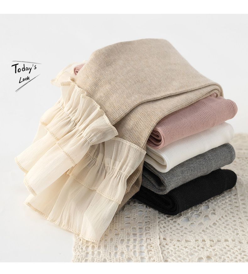 소녀 바닥 양말 봄과 가을 아기 한 부분 양말 어린이 레깅스 단색 레이스 양말면 바지 도매