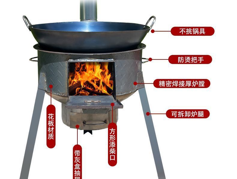 우드 스토브 가정용 나무 불타는 움직일 수있는 땅 스토브 농촌 나무 스토브 새로운 난방 대형 냄비 테이블 야외 캠핑