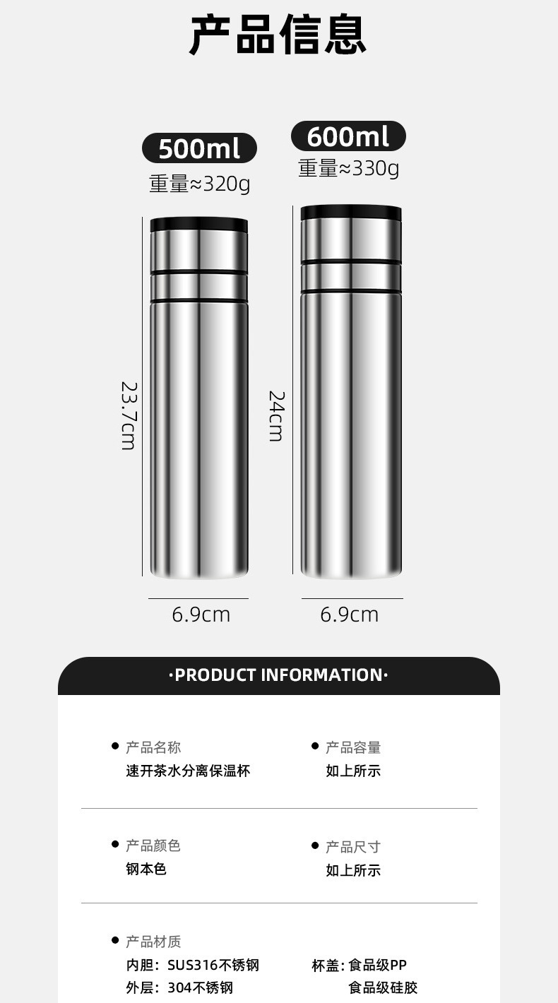 새로운 빠른 오프닝 보온병 컵 차 분리 컵 316 스테인레스 스틸 절연 비즈니스 인쇄 레터링 컵 도매스토어 가기