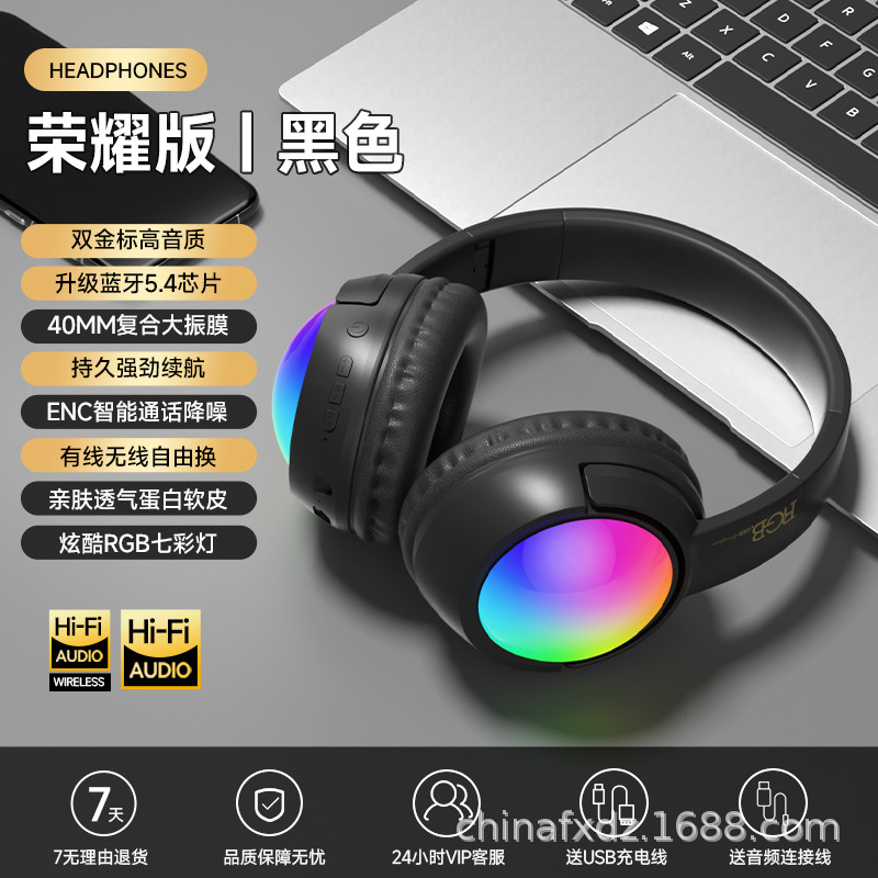 국경을 넘는 인기 RGB 발광 블루투스 헤드셋, 마이크가 있는 무선 경쟁 게임용 헤드셋, 긴 배터리 수명의 휴대폰 헤드셋