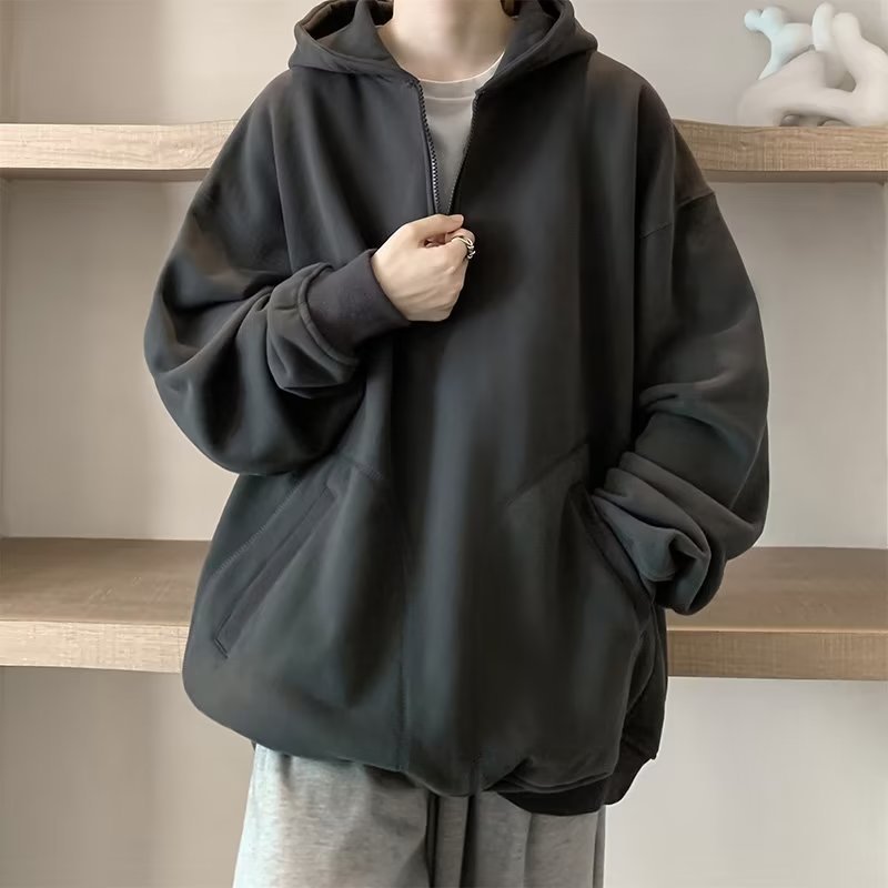 • 다크그레이 지퍼 스웨트셔츠 [후리스 스타일]-L
