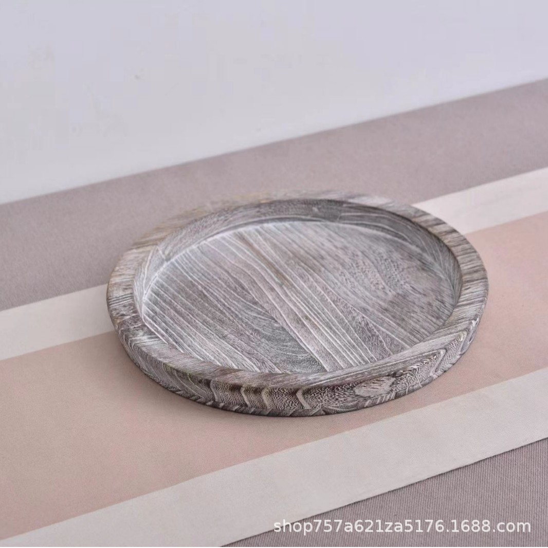 빈티지 나무 트레이 테이블탑 색상 처리된 식판 심플한 아로마테라피 장식 트레이 경사진 가장자리 원형 촛대 과일 보관 트레이스토어 가기