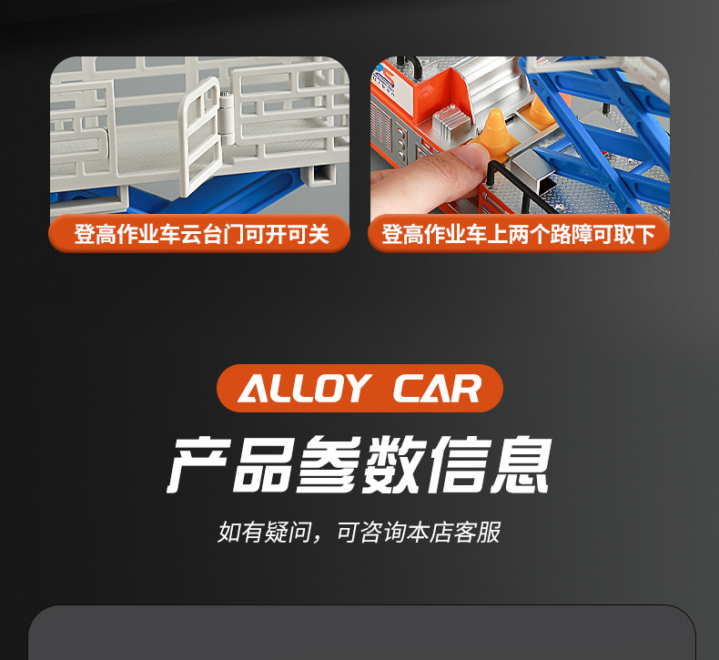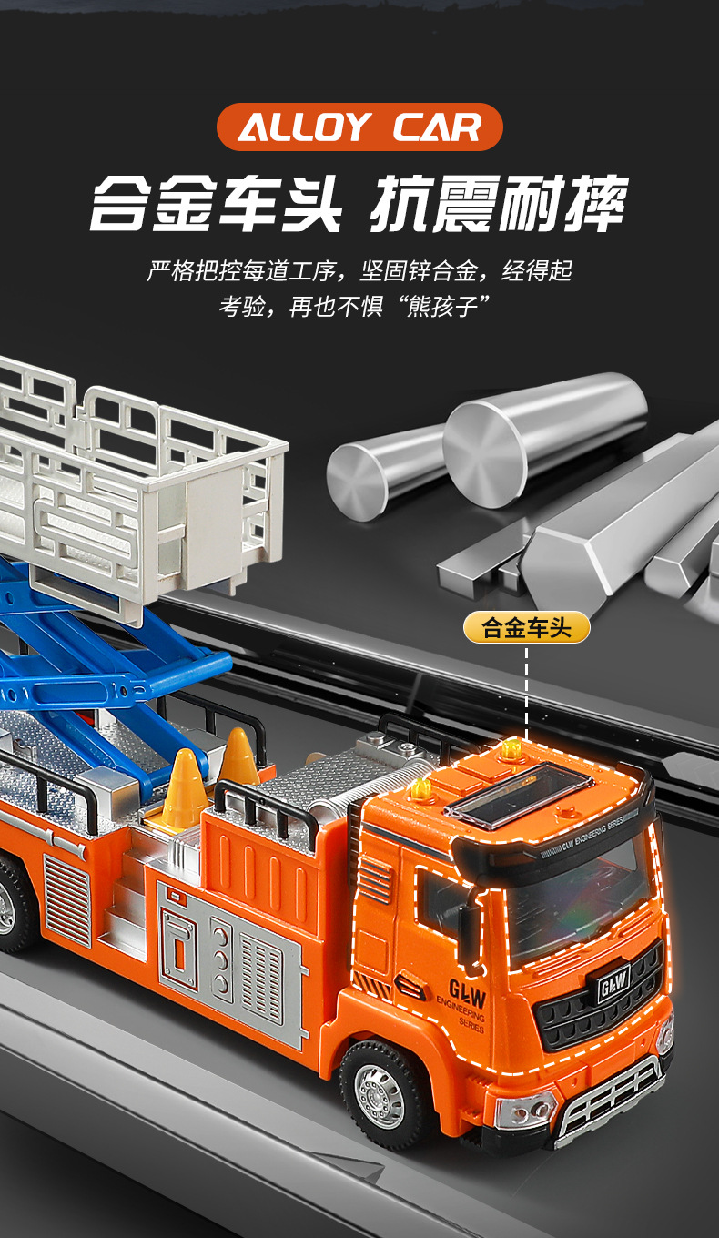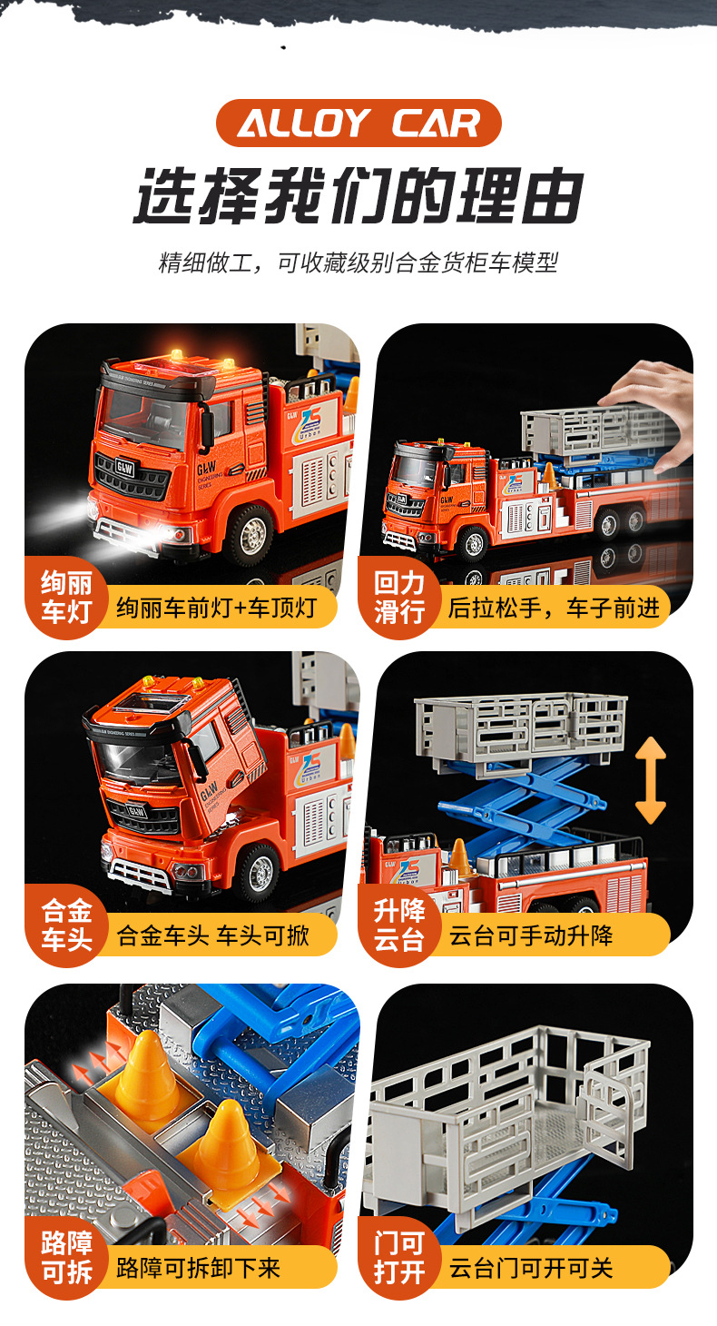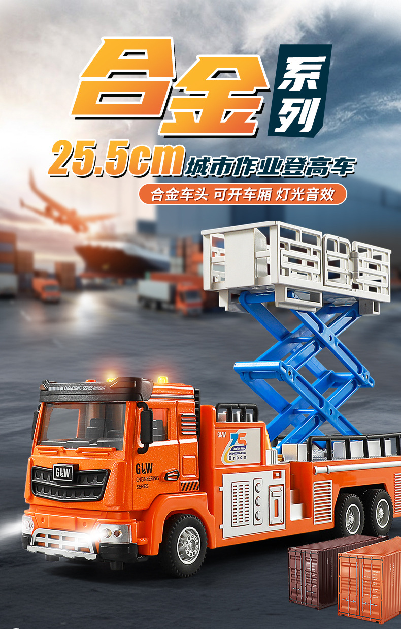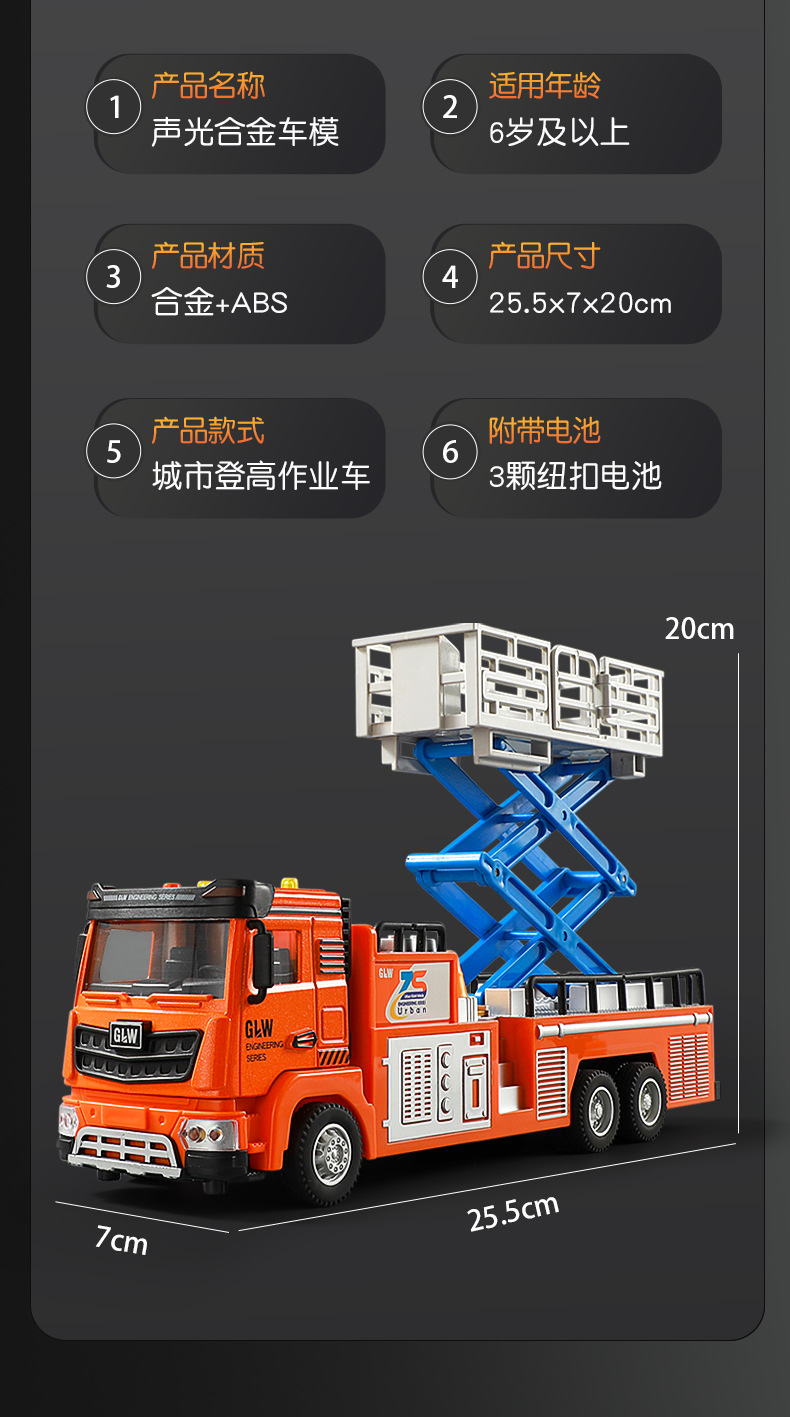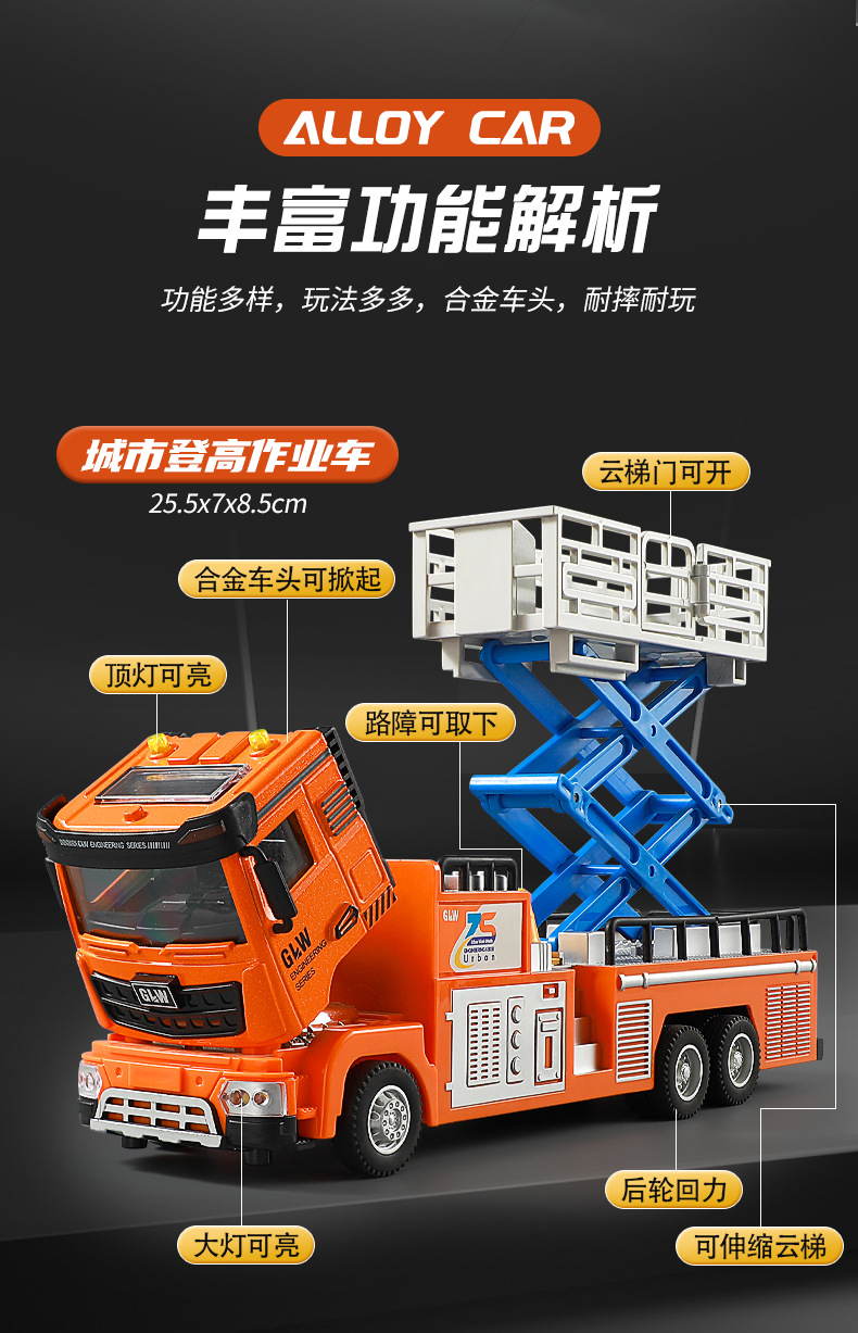 강력한 1:40 합금 소리와 빛 효과가 있는 고소작업차 장난감, 리프트카 장난감, 도시 구조차 장난감, 고공작업용스토어 가기