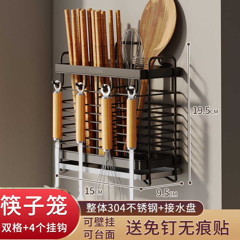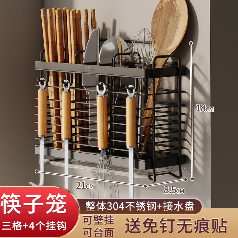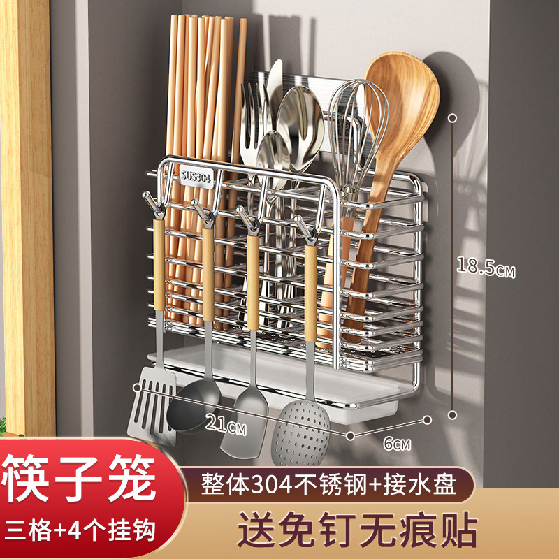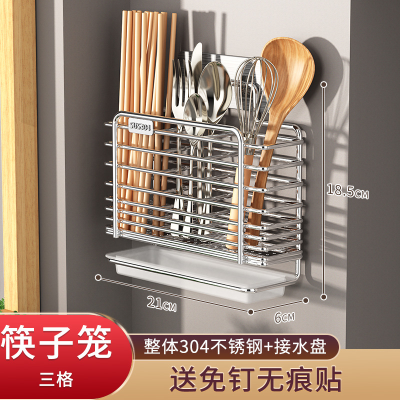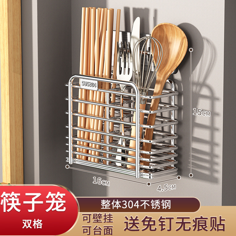 가정용 304 스테인레스 스틸 젓가락 보관 상자 주방 젓가락 케이지 벽걸이 형 젓가락 케이지 스푼 젓가락 홀더 보관 랙