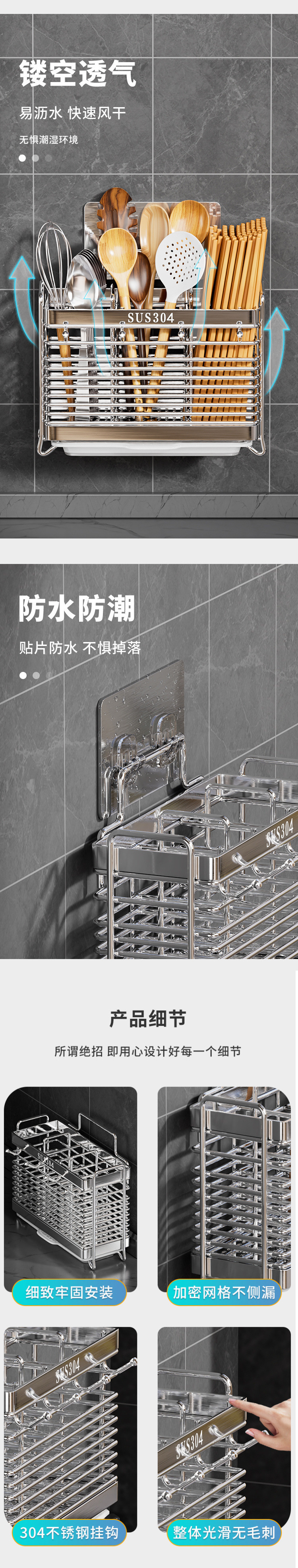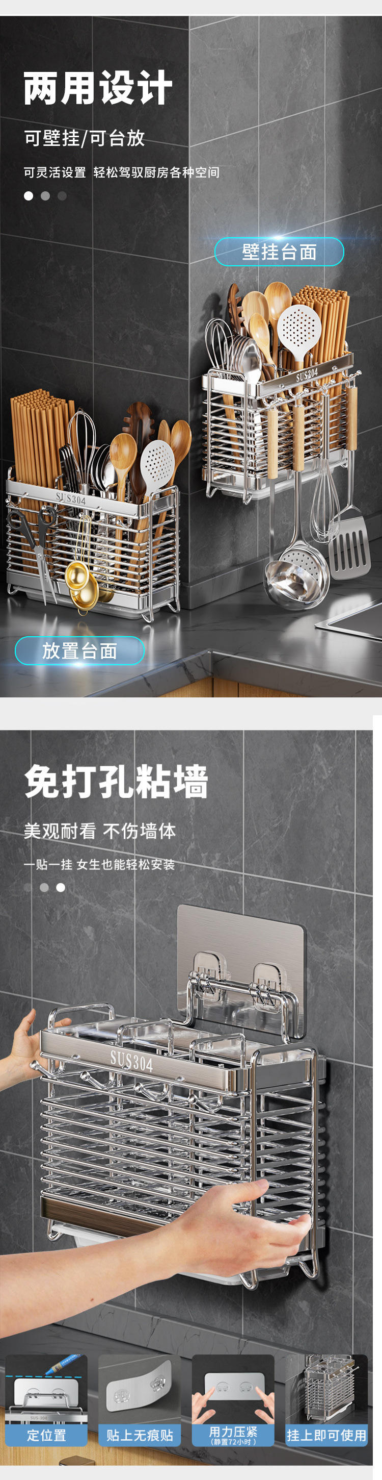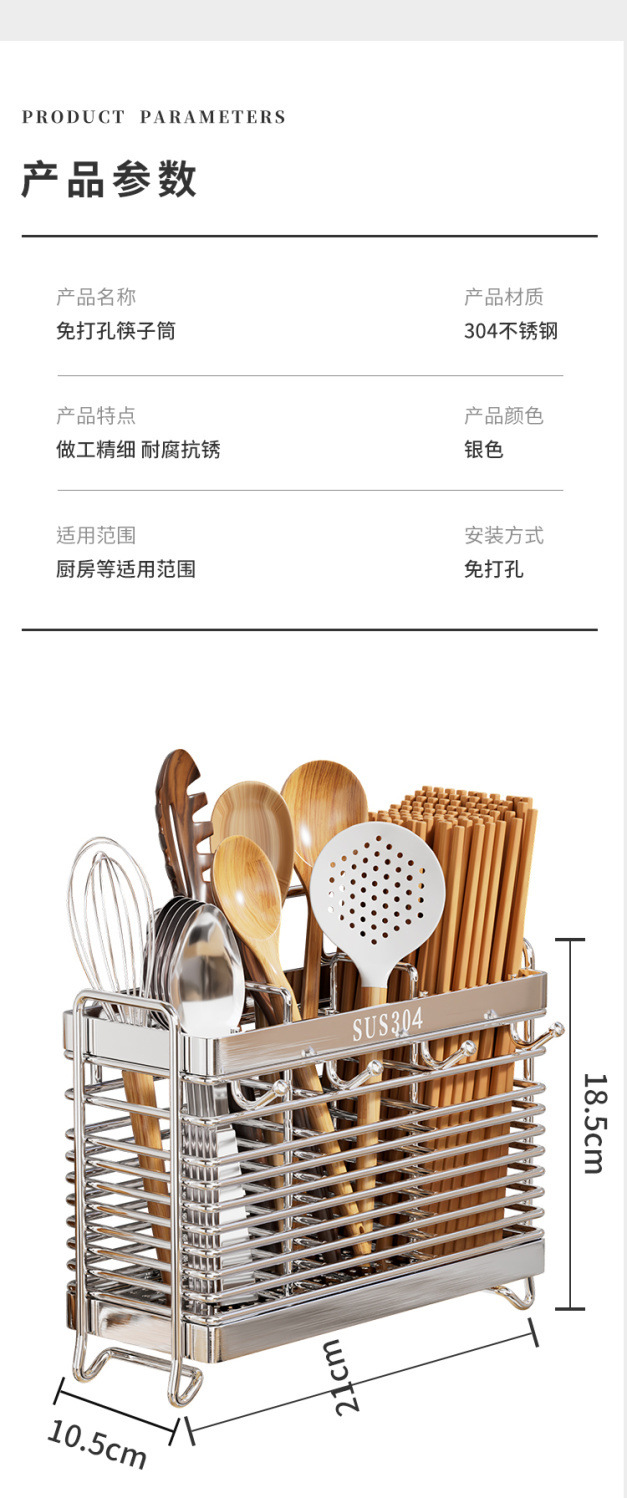 가정용 304 스테인레스 스틸 젓가락 보관 상자 주방 젓가락 케이지 벽걸이 형 젓가락 케이지 스푼 젓가락 홀더 보관 랙