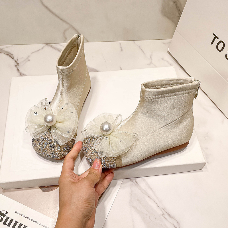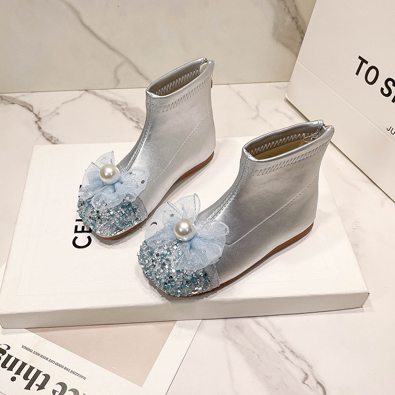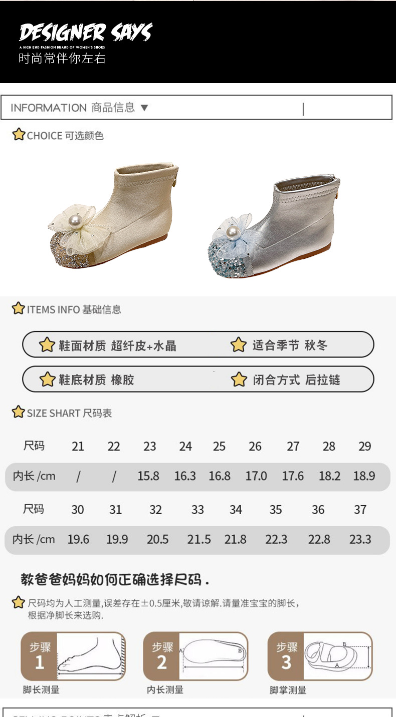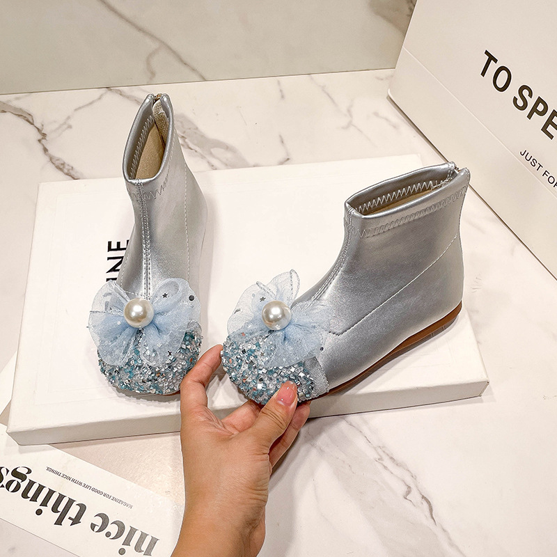 여자 크리스탈 발목 부츠 기모 겨울 새로운 소프트 하단 공주 스타일 부츠 아기 기모 마틴 부츠 엘사 가죽 부츠