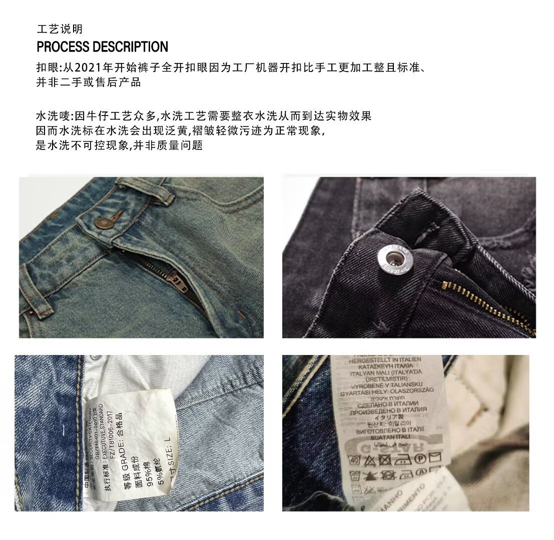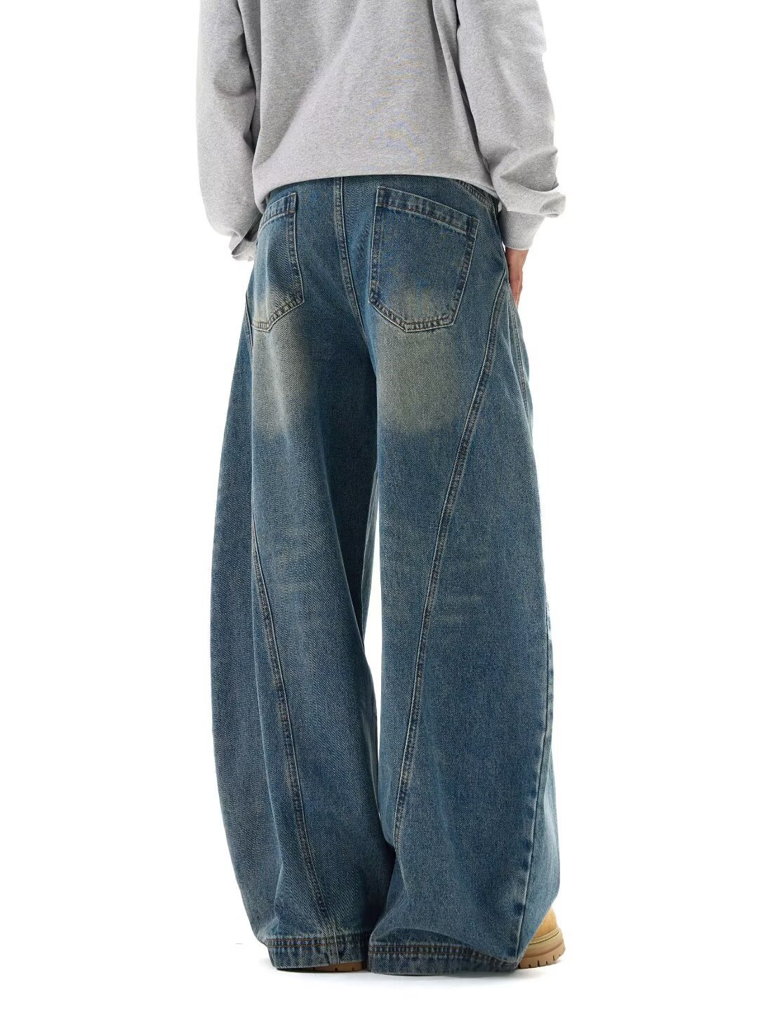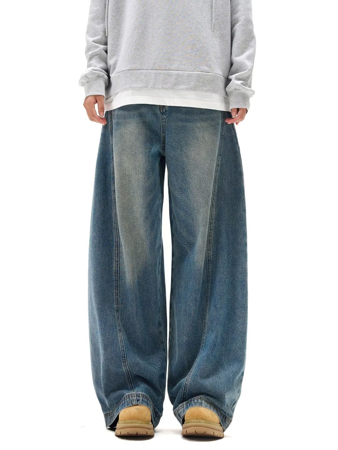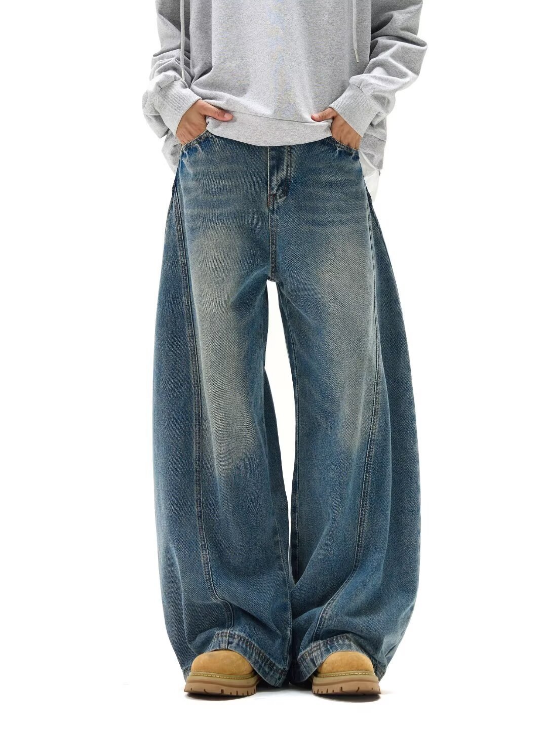 미국식 빈티지 스티칭 시미 타르 청바지 남성용 느슨한 넓은 다리 강아지 잘 생긴 오버 사이즈 해체 된 넓은 다리 바지