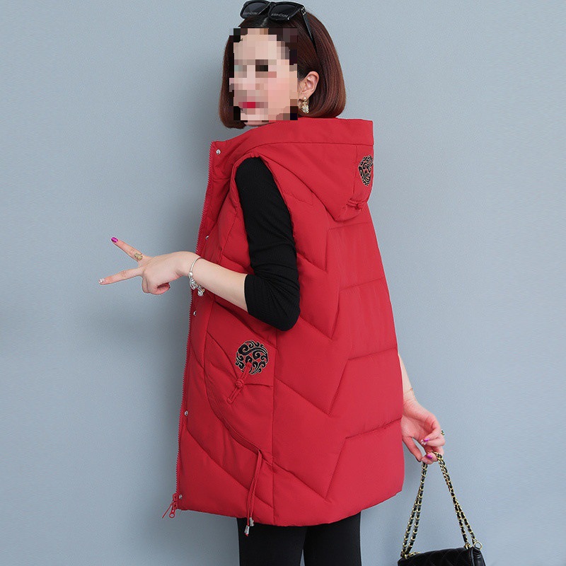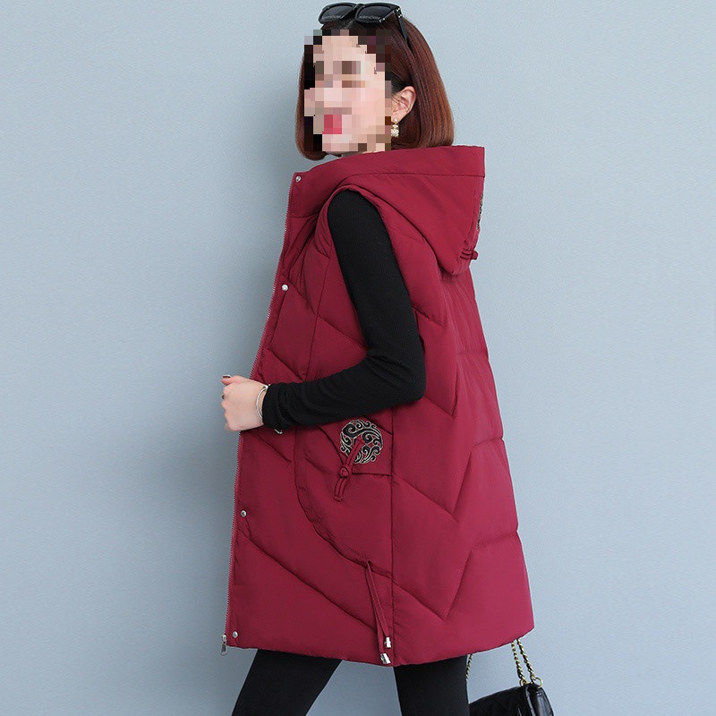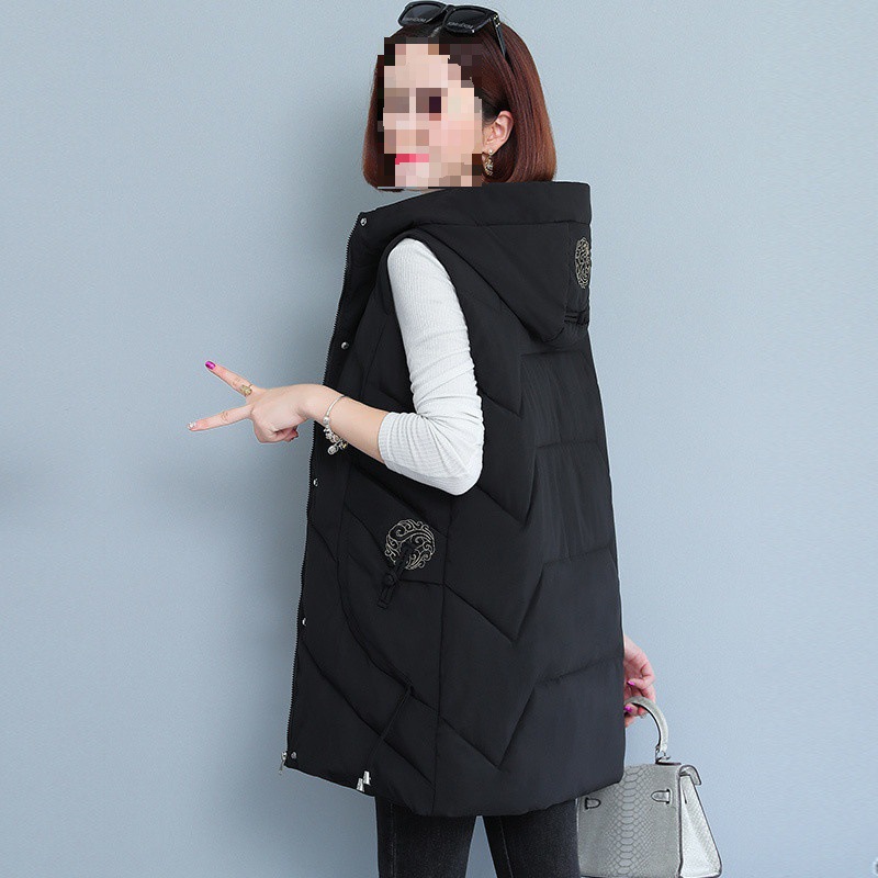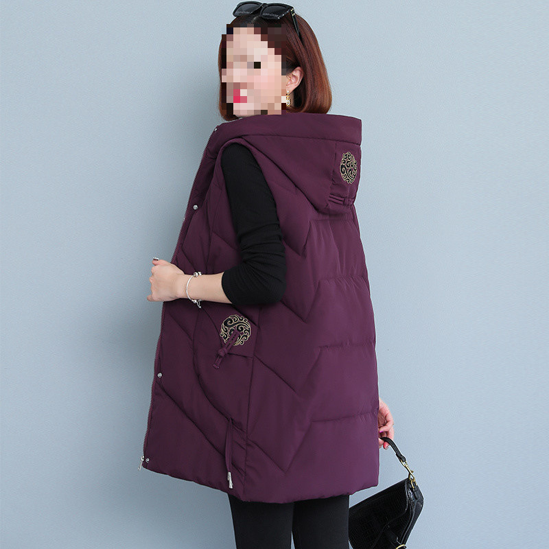 중년 · 노인 다운 코튼 조끼 여성 가을과 겨울 두껍게 긴 조끼 200kg 어머니 플러스 사이즈 양복 조끼