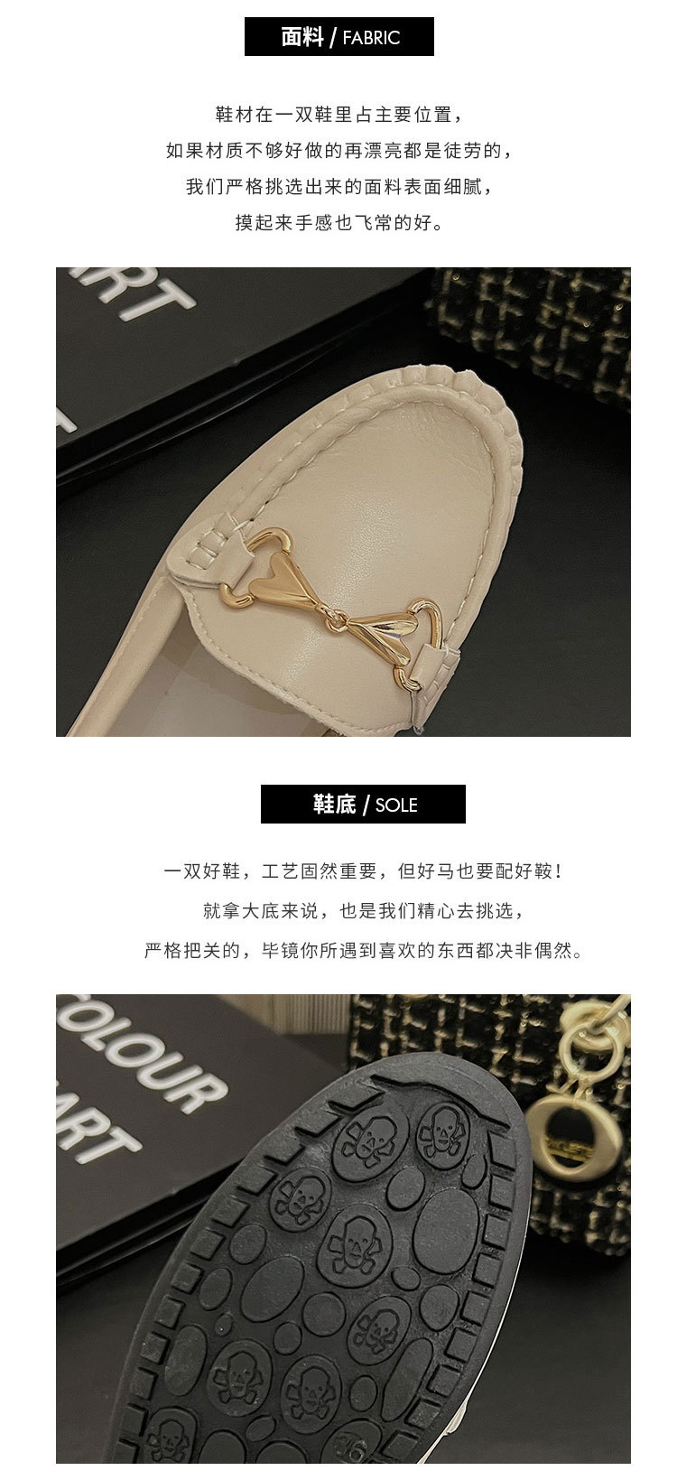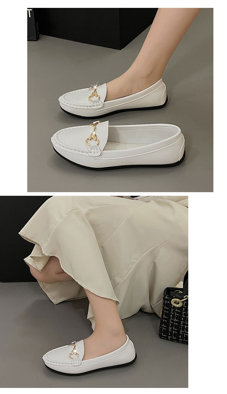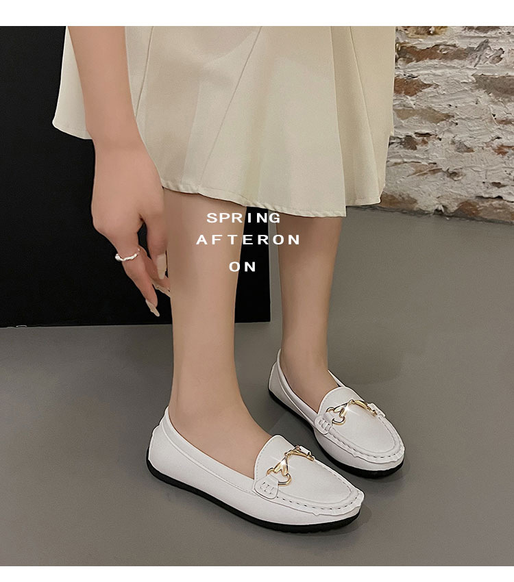 봄 2024 새로운 스타일의 콩 신발 여성 슬립-부드러운 바닥 흰색 신발 플러스 사이즈 여성을위한 어머니 영국 스타일 가죽 신발스토어 가기