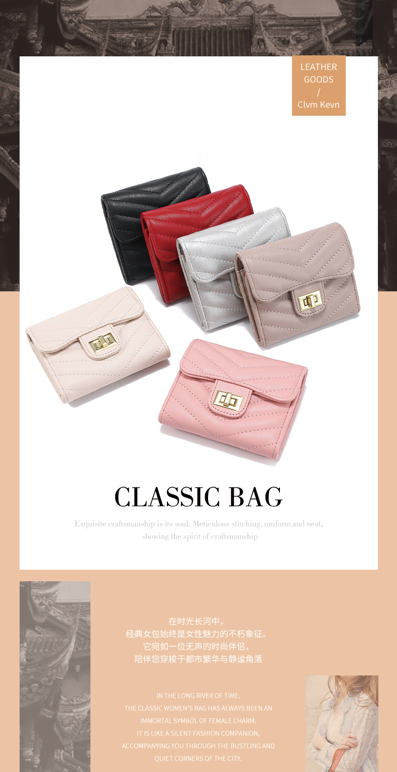 2024 새로운 여성의 절묘한 지갑 패션 트라이 폴드 카드 가방 간단한 V-그리드 대용량 샤넬 스타일 동전 지갑스토어 가기