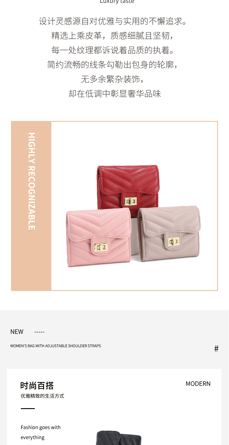 2024 새로운 여성의 절묘한 지갑 패션 트라이 폴드 카드 가방 간단한 V-그리드 대용량 샤넬 스타일 동전 지갑