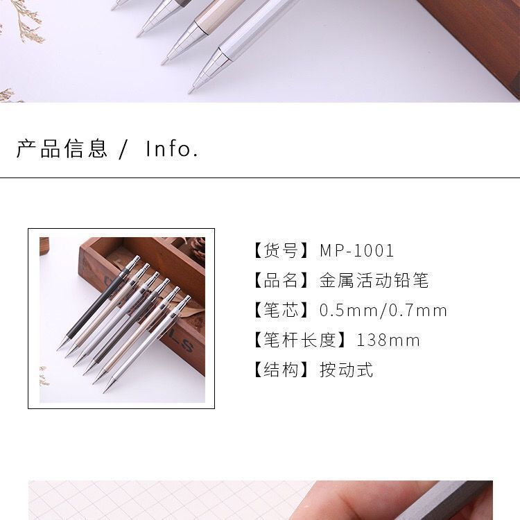 자동 금속 연필, 금속 바, 연속 필기, 낮은 0.5/0.7mm, 손으로 그린 글쓰기용 자동 연필