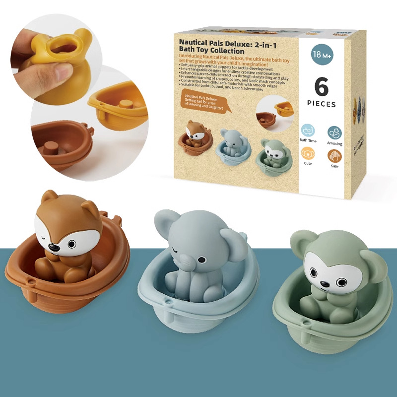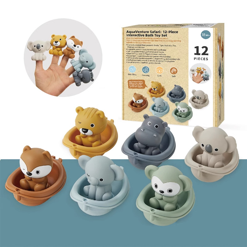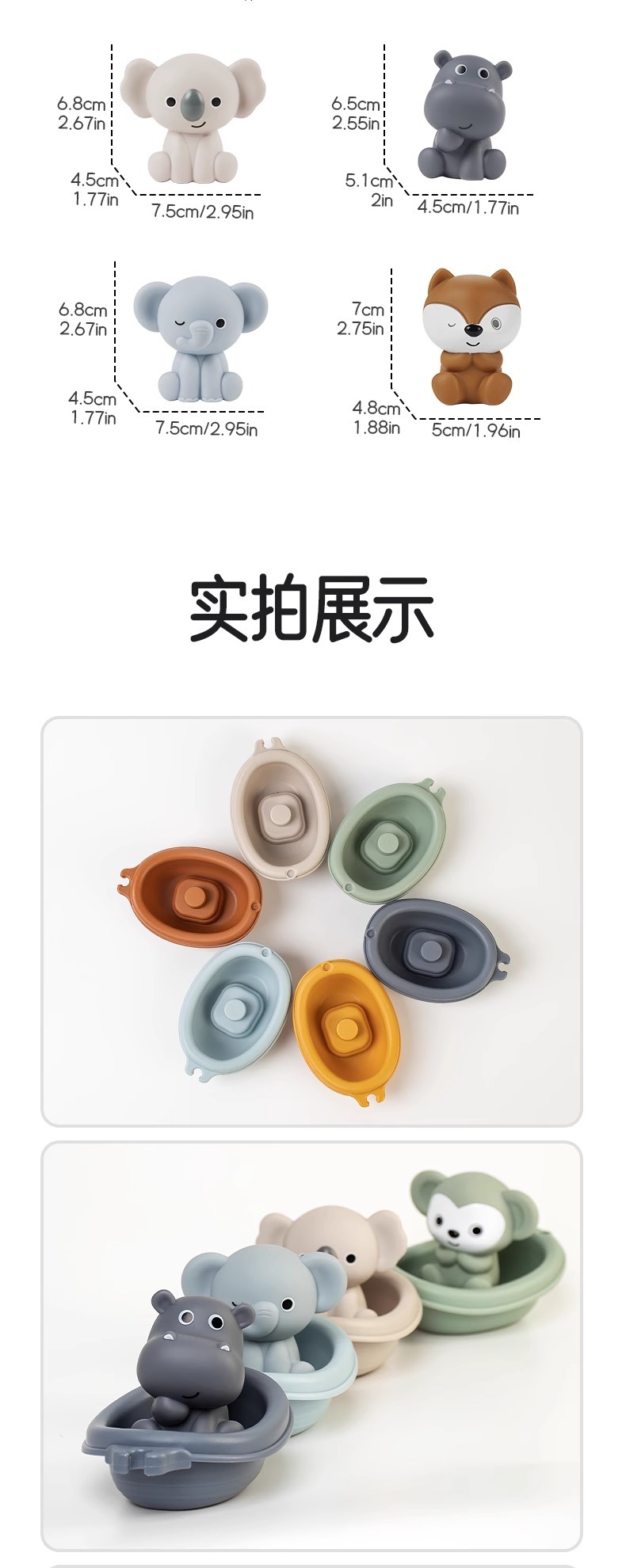국경을 넘는 숲 동물은 보트 쌓아 올리는 음악 핀치 손가락 세트 인형 욕실 어린이 물 장난감 도매로스토어 가기