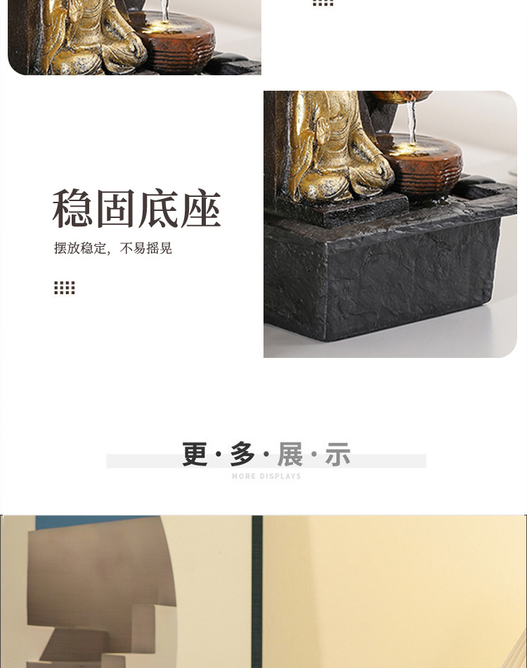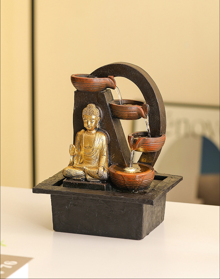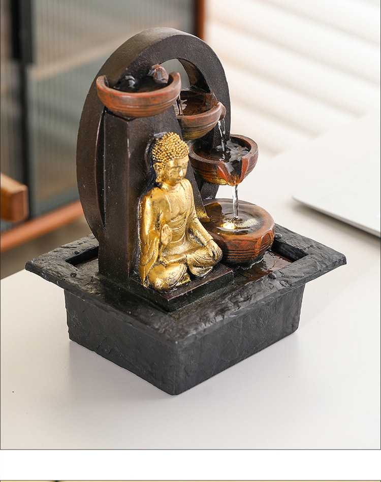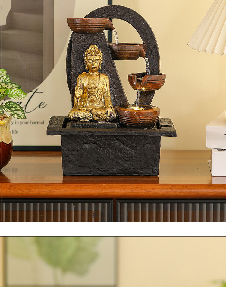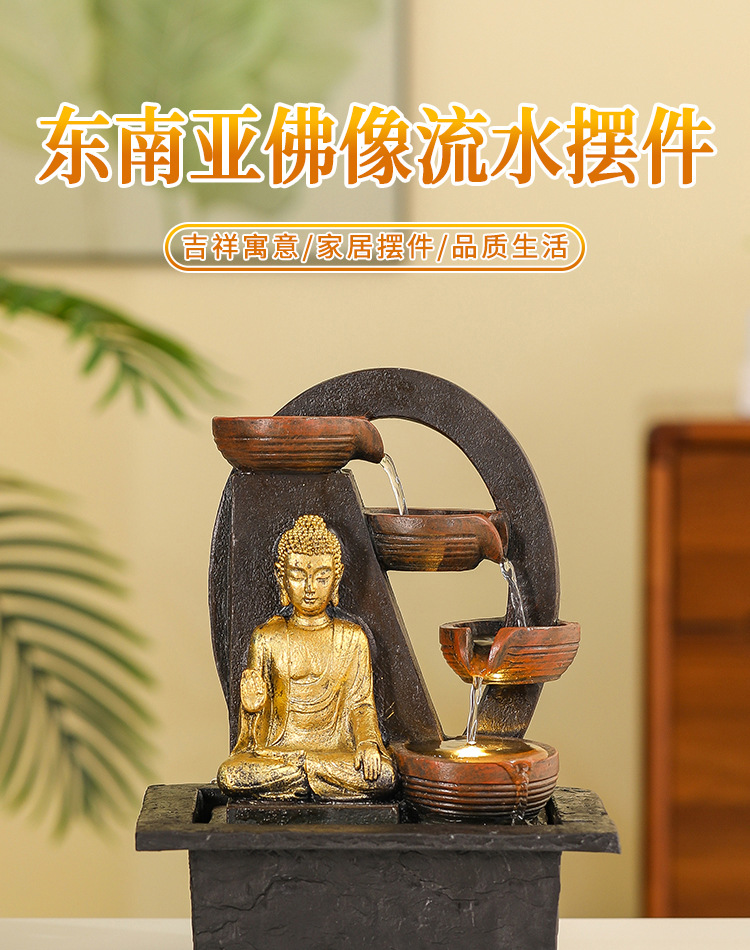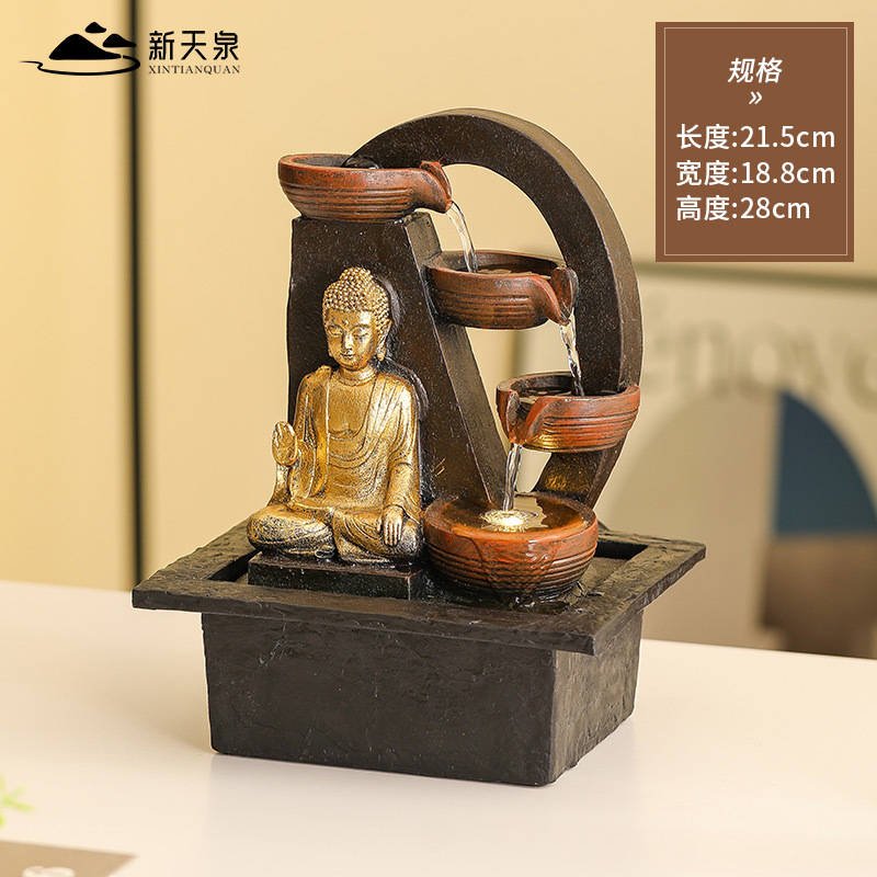 Xintianquan 동남아시아 부처 동상 달리기 물 장식 순환 물 사무실 거실 선 장식품 데스크탑 작은 분수