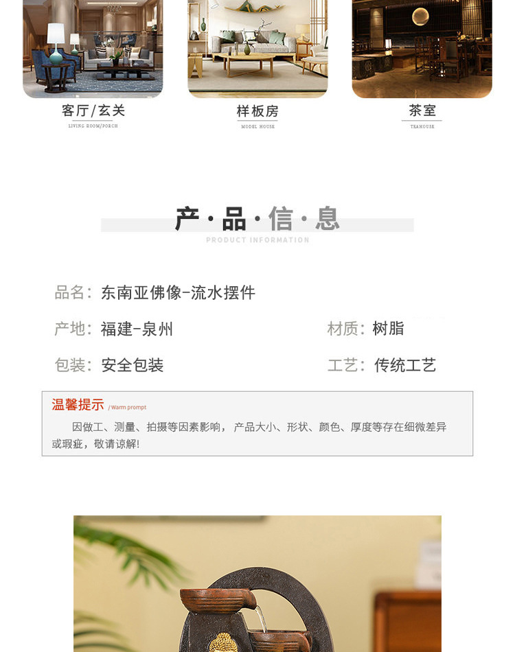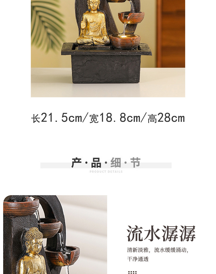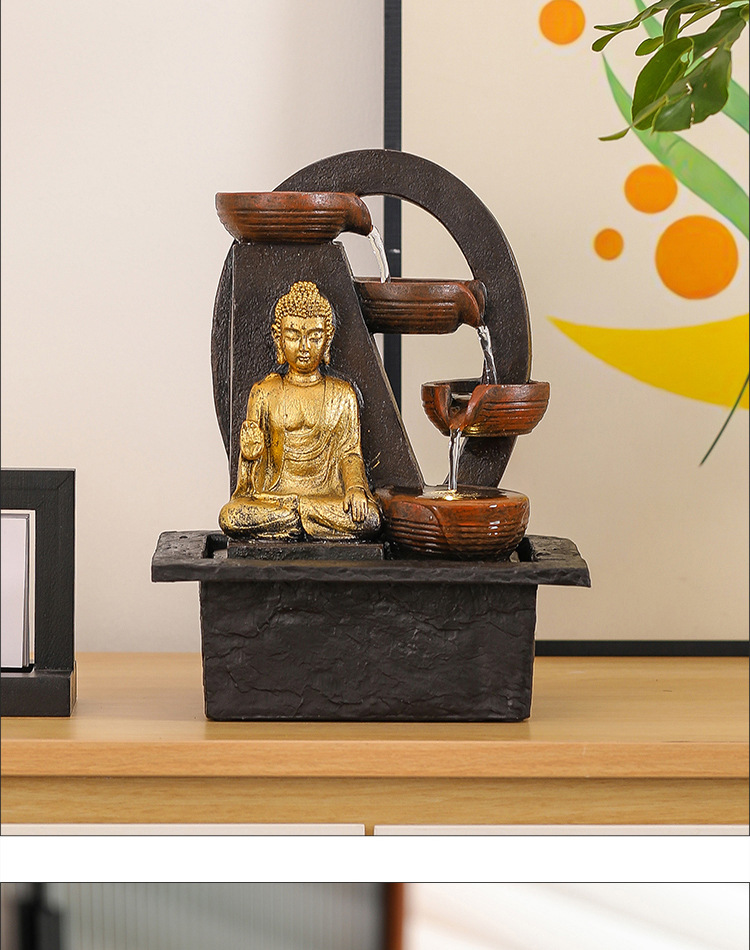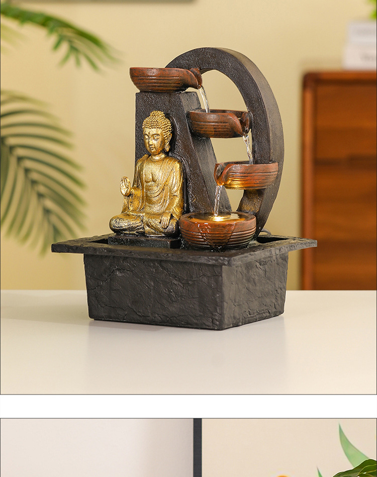 Xintianquan 동남아시아 부처 동상 달리기 물 장식 순환 물 사무실 거실 선 장식품 데스크탑 작은 분수스토어 가기
