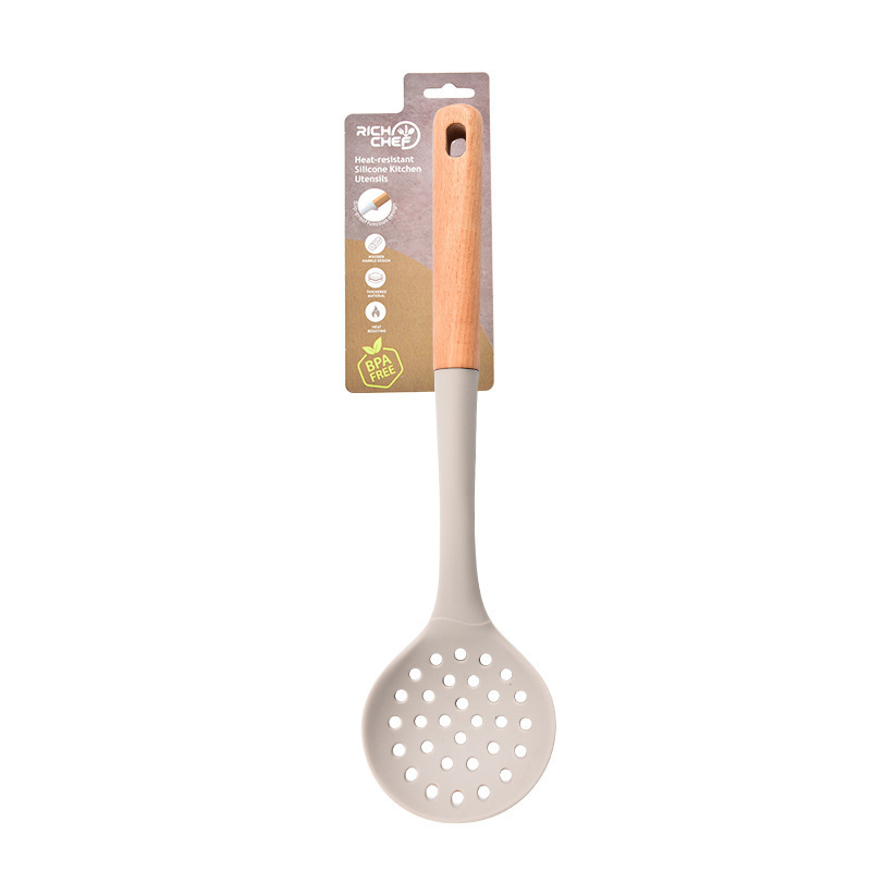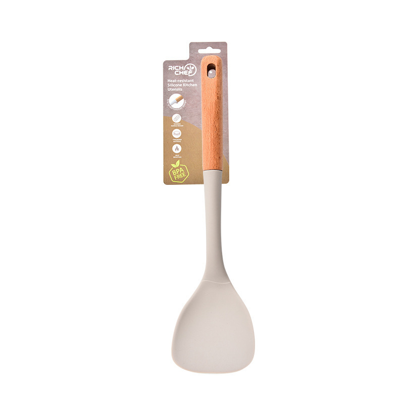 붙지 않는 나무 손잡이 실리콘 삽 고온 저항하는 실리콘 냄비 삽 수프 스푼 요리 삽 스푼 단일 타이 카드 주방용품스토어 가기