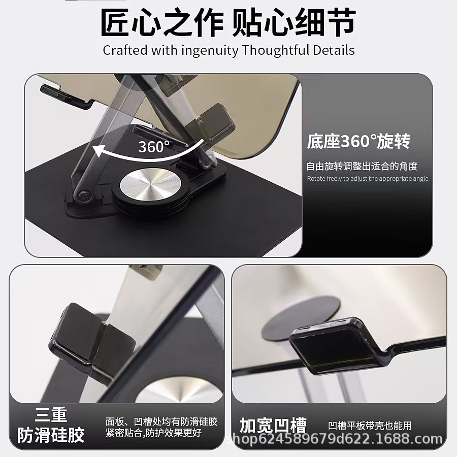 새로운 아크릴 태블릿 스탠드 데스크탑 로터리 접이식 미끄럼 방지 휴대 전화 태블릿 지원 프레임