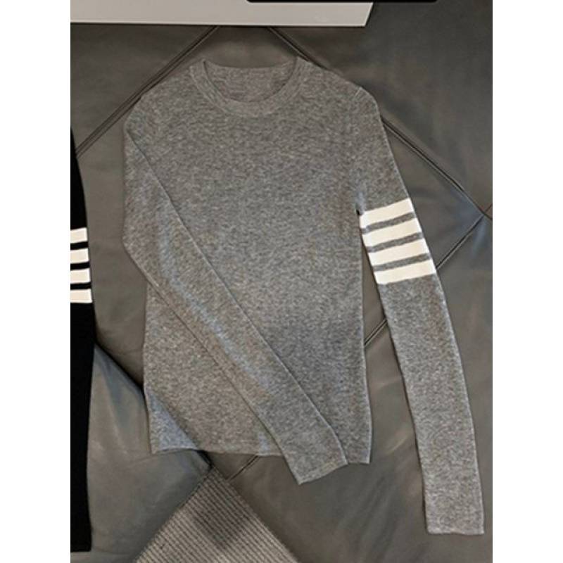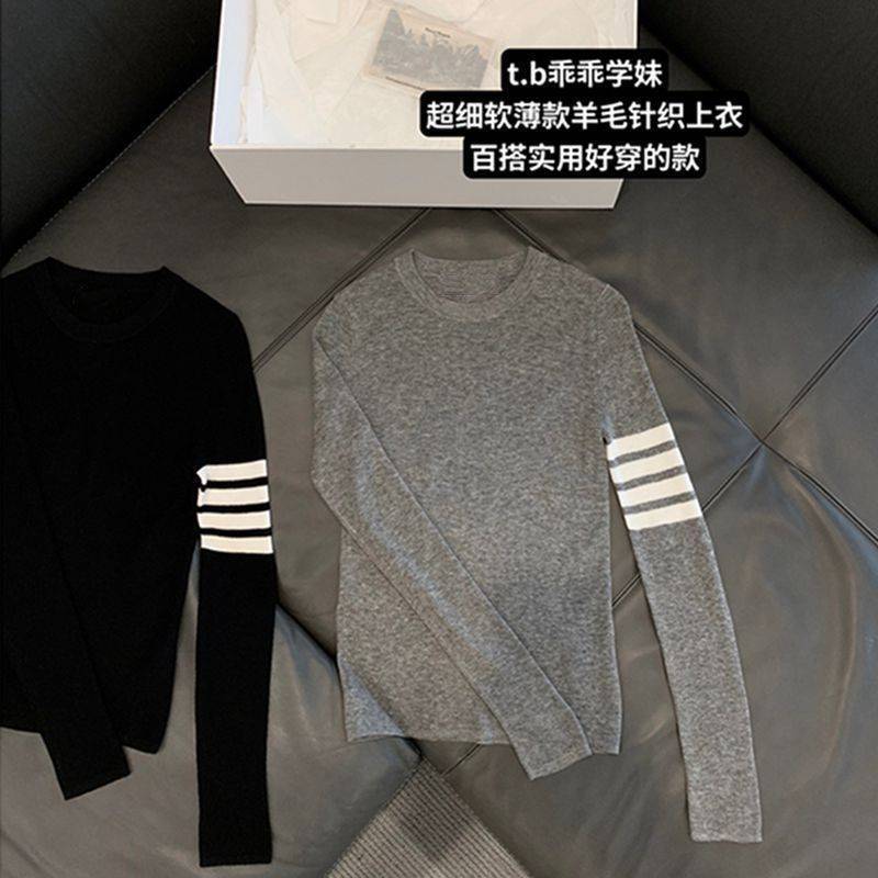 Ins 한국식 아카데미 스타일 얇은 스위트 베이스 스웨터 라운드 넥 긴팔 캐주얼 슬림 핏 소프트 스웨터 탑스토어 가기