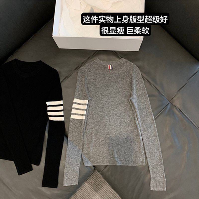 Ins 한국식 아카데미 스타일 얇은 스위트 베이스 스웨터 라운드 넥 긴팔 캐주얼 슬림 핏 소프트 스웨터 탑