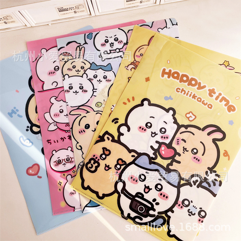 Ins 만화 Jiyka 와우 포스터 파일 가방 학생 A4 테스트 용지 잘못된 질문 L 형 방수 대용량 저장 파일스토어 가기