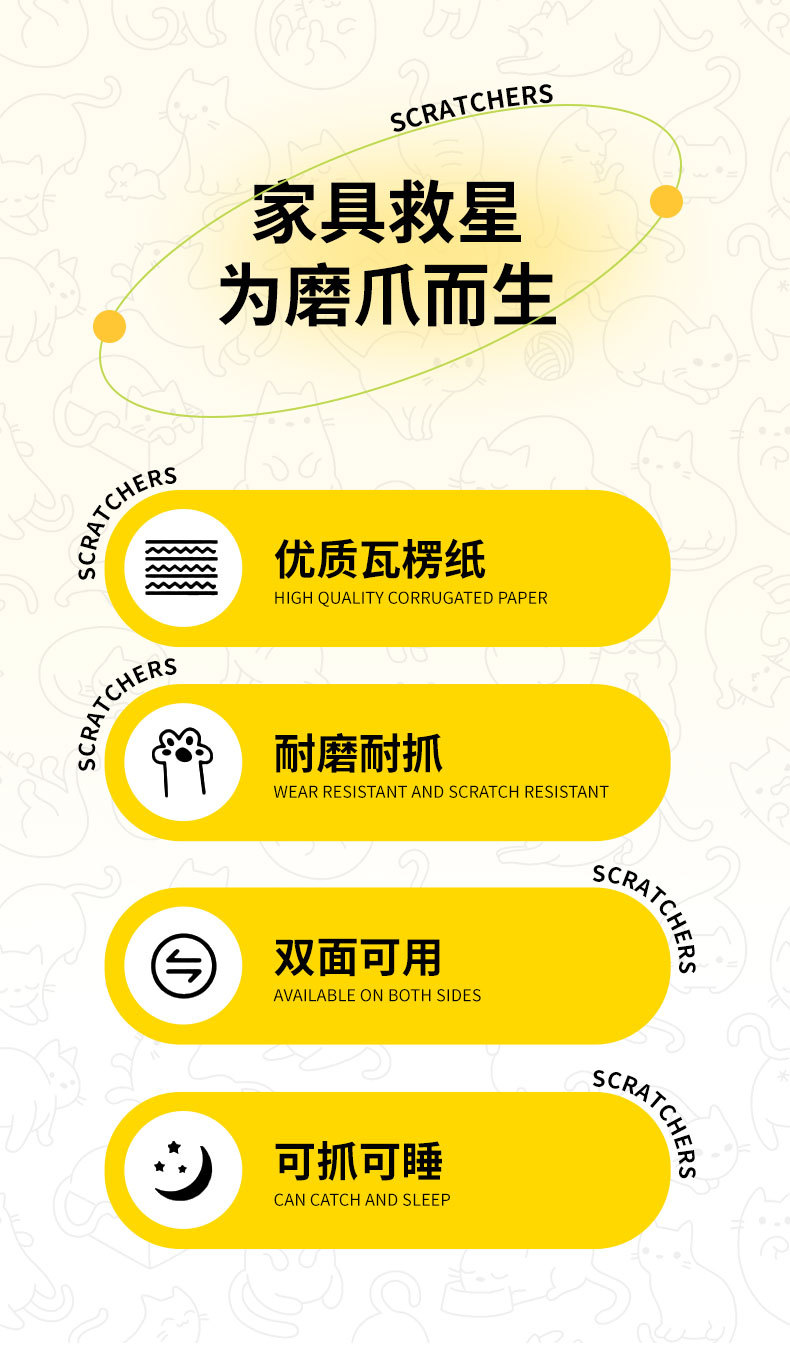 고양이 스크래치 보드 스트레이트 보드 소파 고양이 발톱 발톱 대형 골판지 원피스 연삭 발톱 착용 방지 장난감 고양이 용품