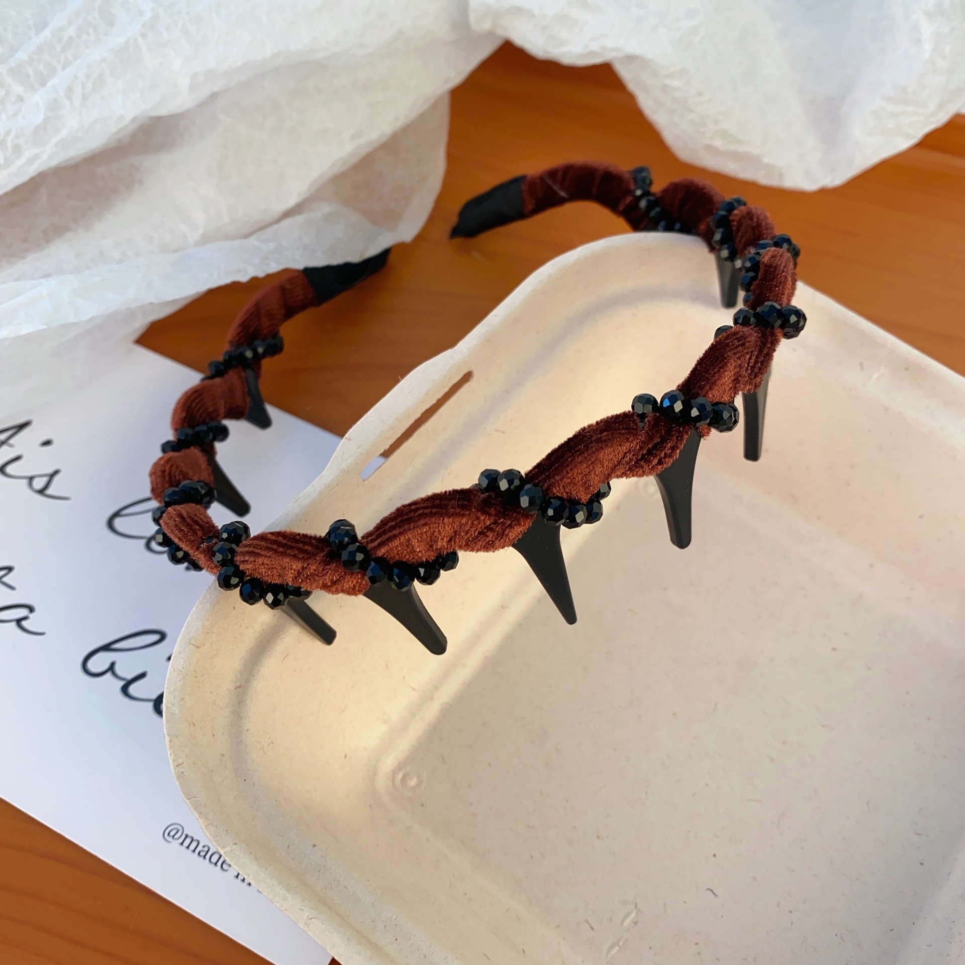가벼운 럭셔리 벨벳 헤어 밴드 여성용 하이 엔드 크리스탈 와인딩 헤드 밴드 틈새 디자인 독특한 절묘한 올 매치 헤드웨어 헤어 액세서리스토어 가기