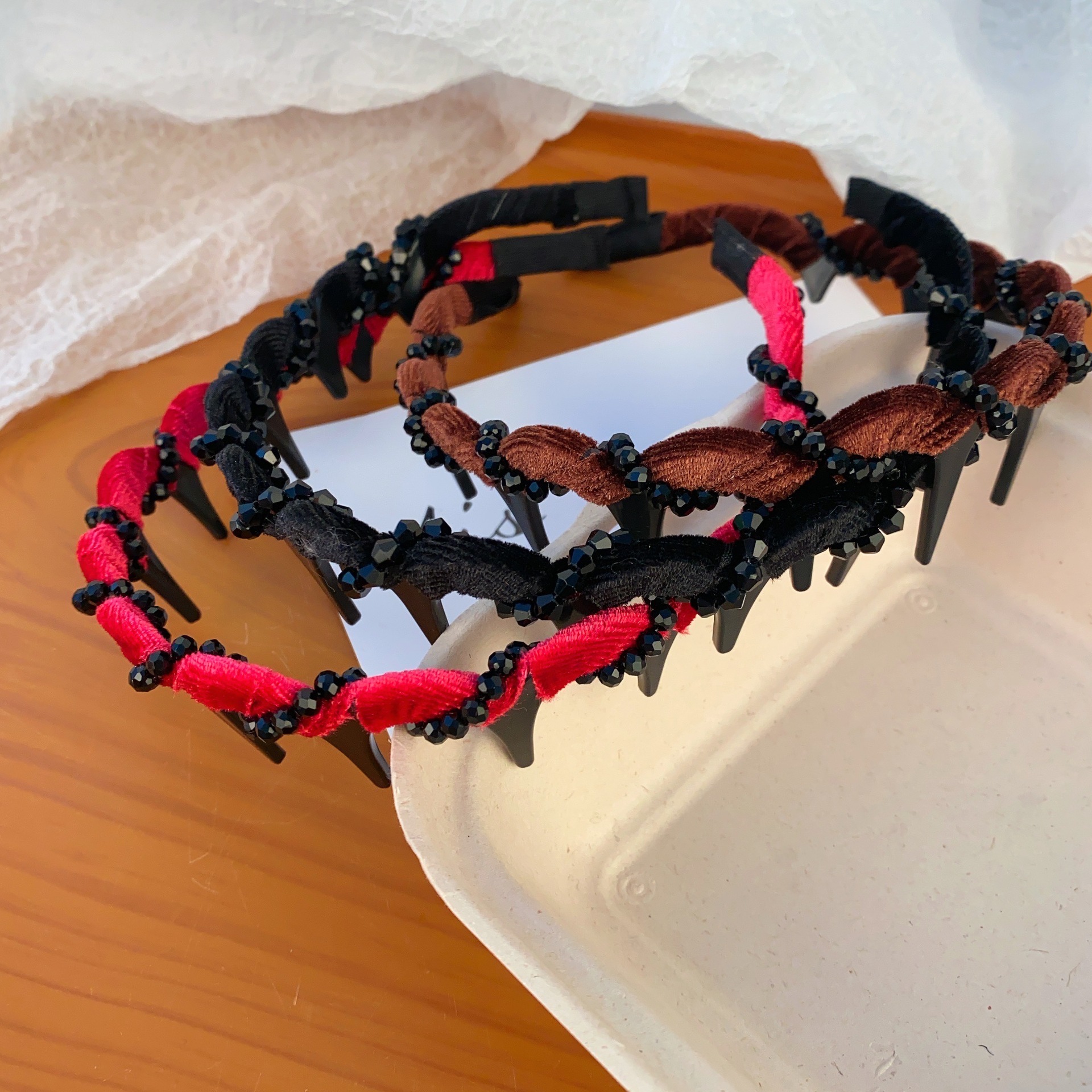 가벼운 럭셔리 벨벳 헤어 밴드 여성용 하이 엔드 크리스탈 와인딩 헤드 밴드 틈새 디자인 독특한 절묘한 올 매치 헤드웨어 헤어 액세서리