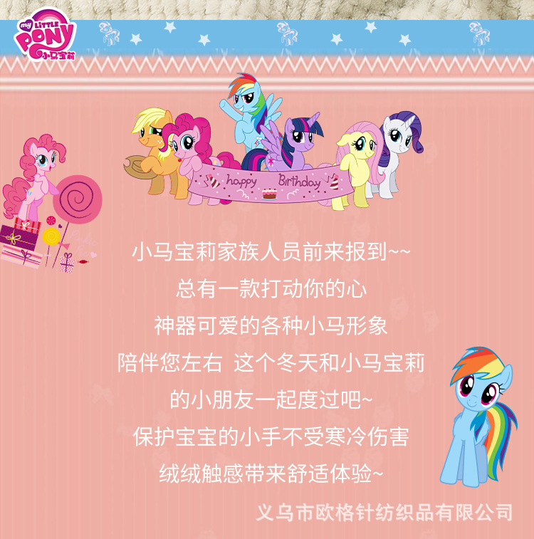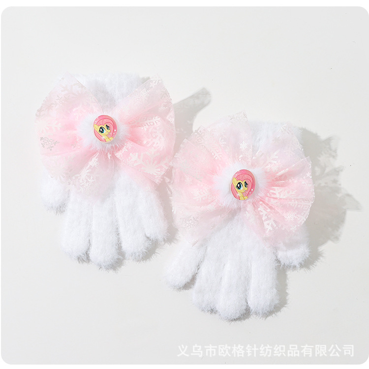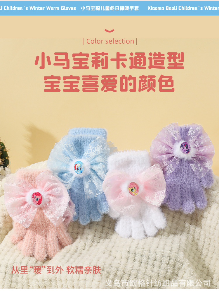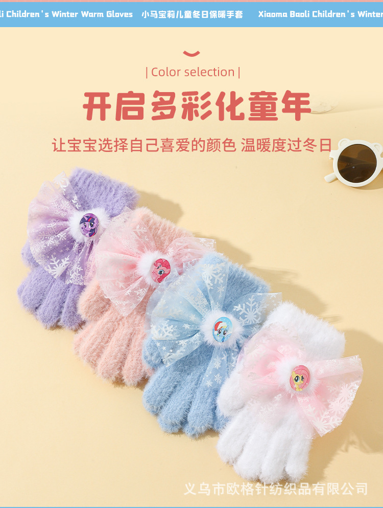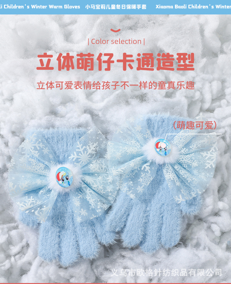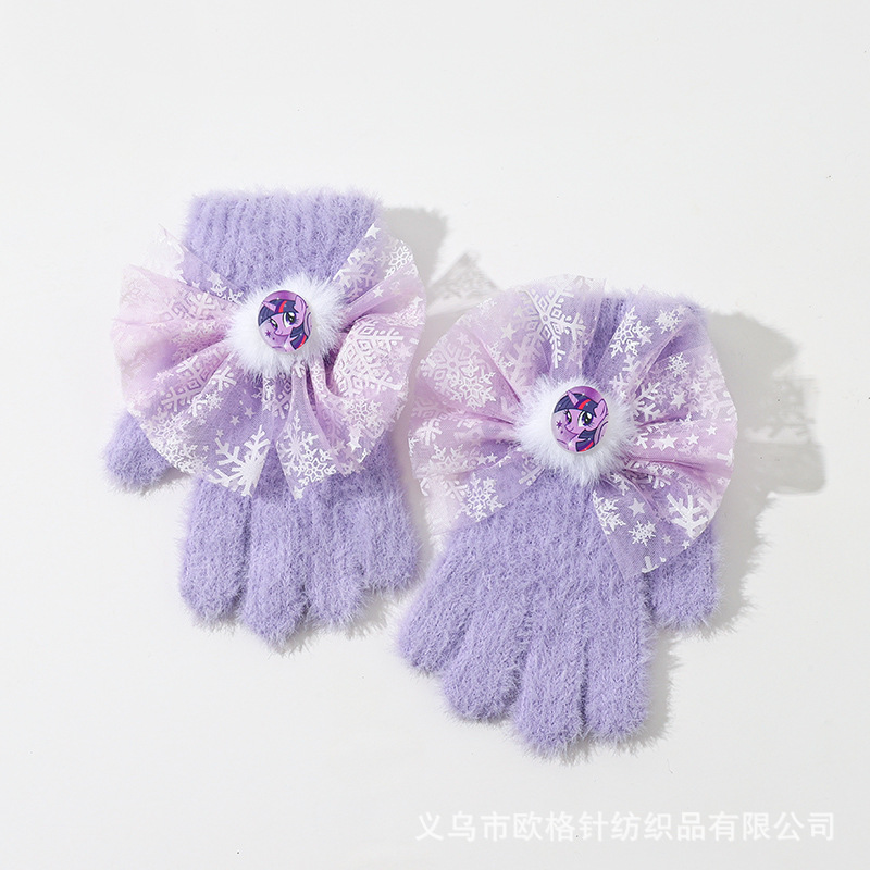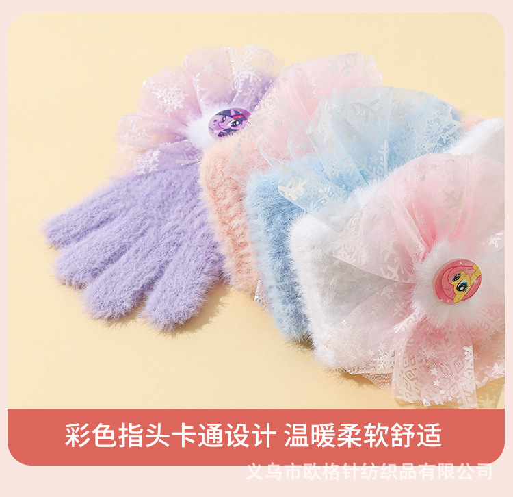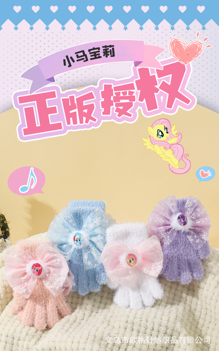 포니 폴리 정품 공인 공주 스타일 니트 장갑 5-10 세 어린이 5 손가락 터치 스크린 따뜻한 손스토어 가기