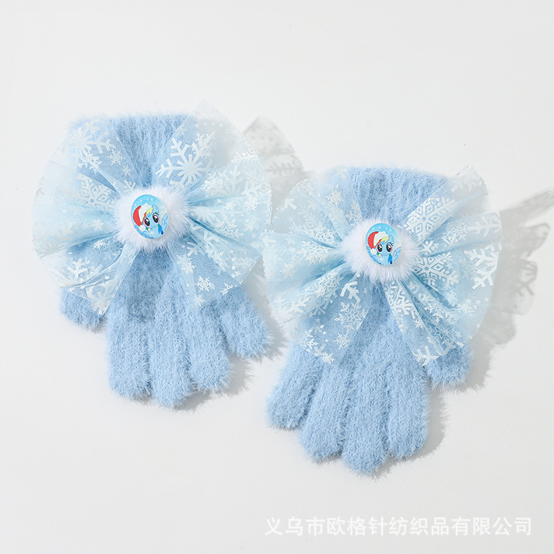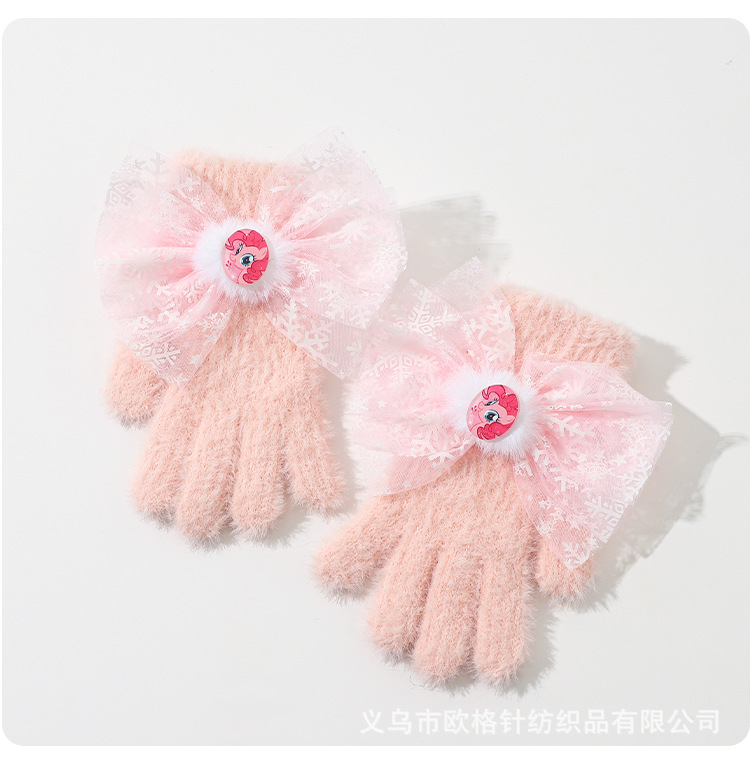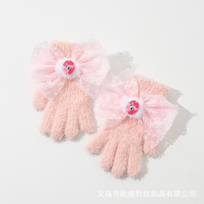 포니 폴리 정품 공인 공주 스타일 니트 장갑 5-10 세 어린이 5 손가락 터치 스크린 따뜻한 손