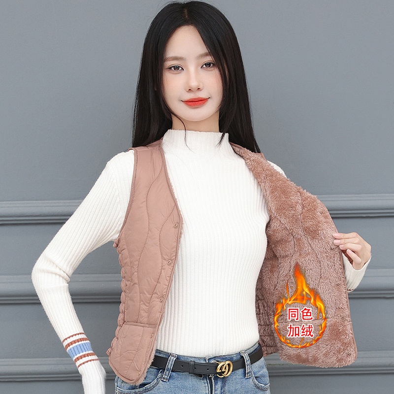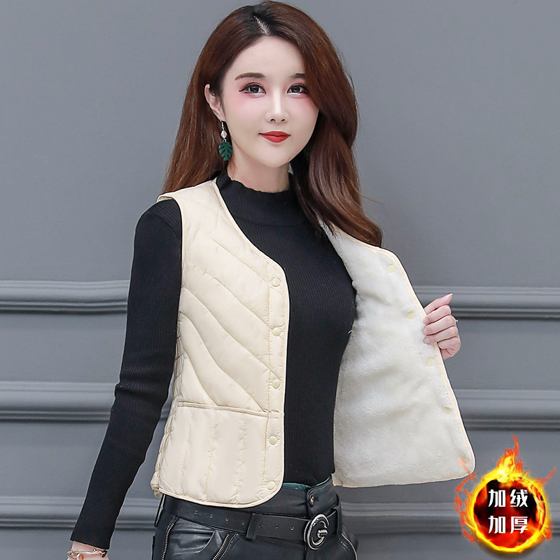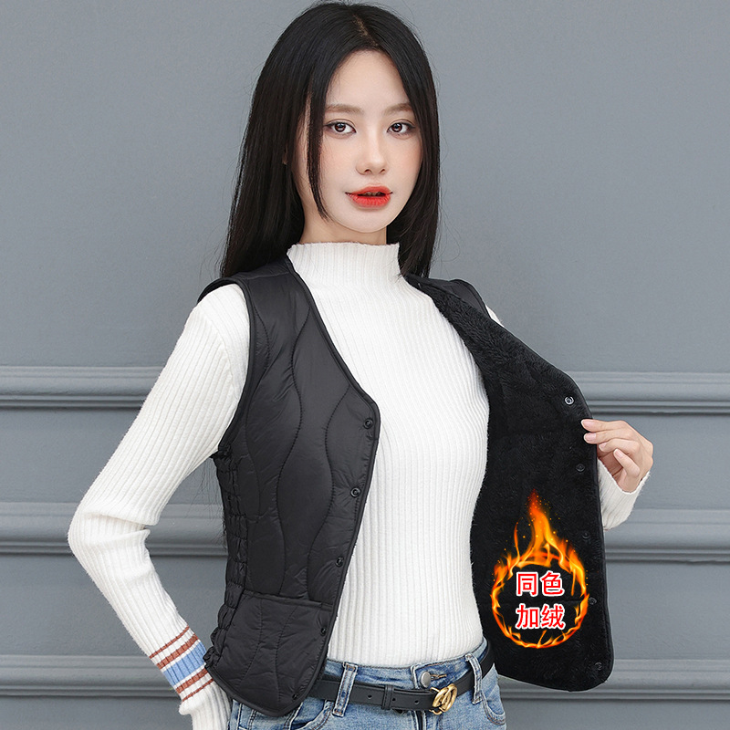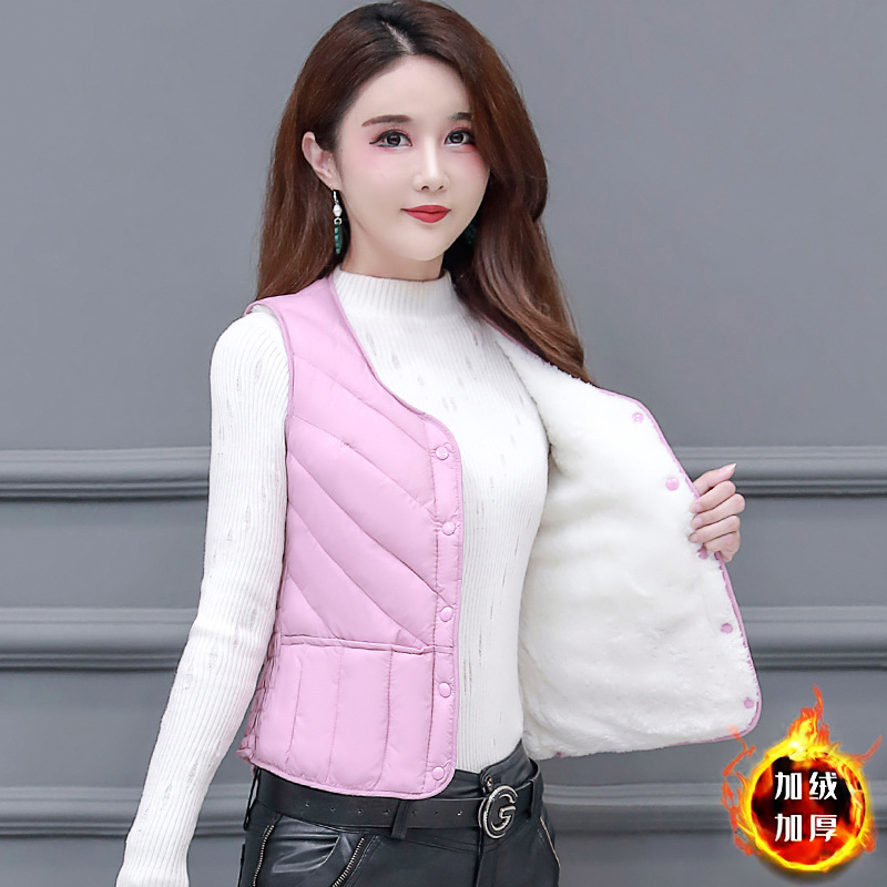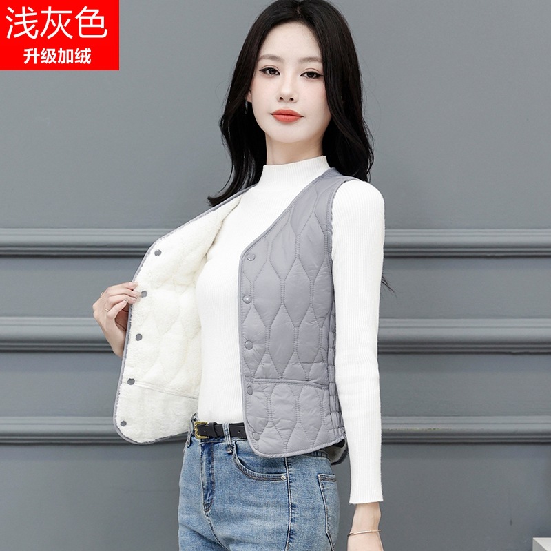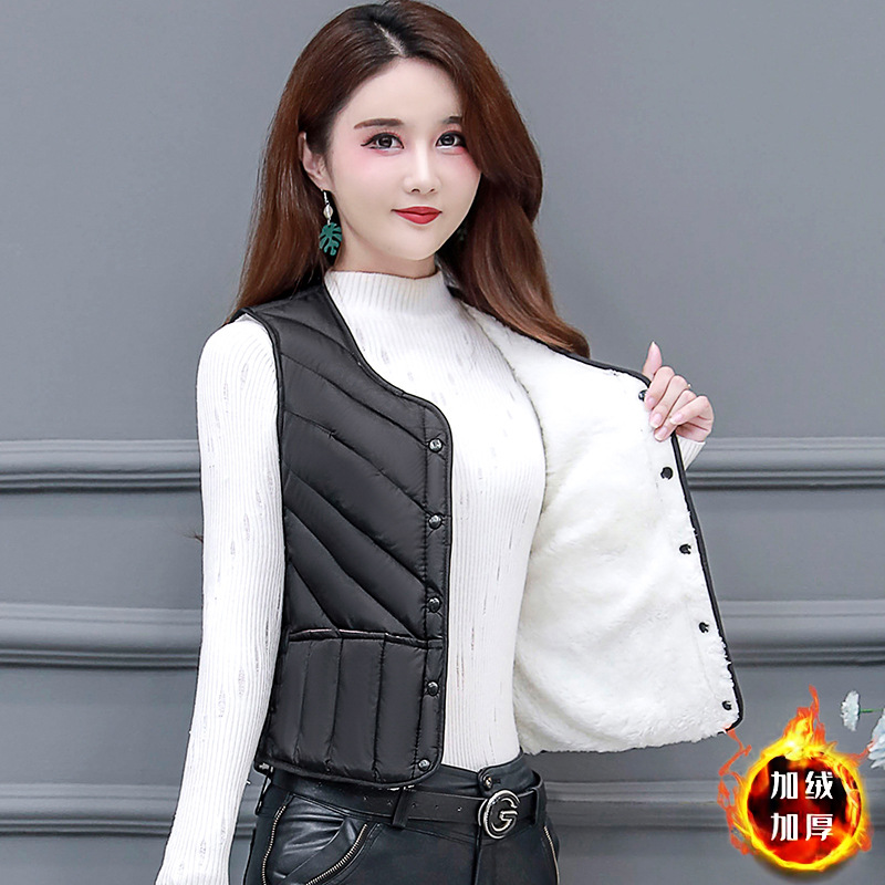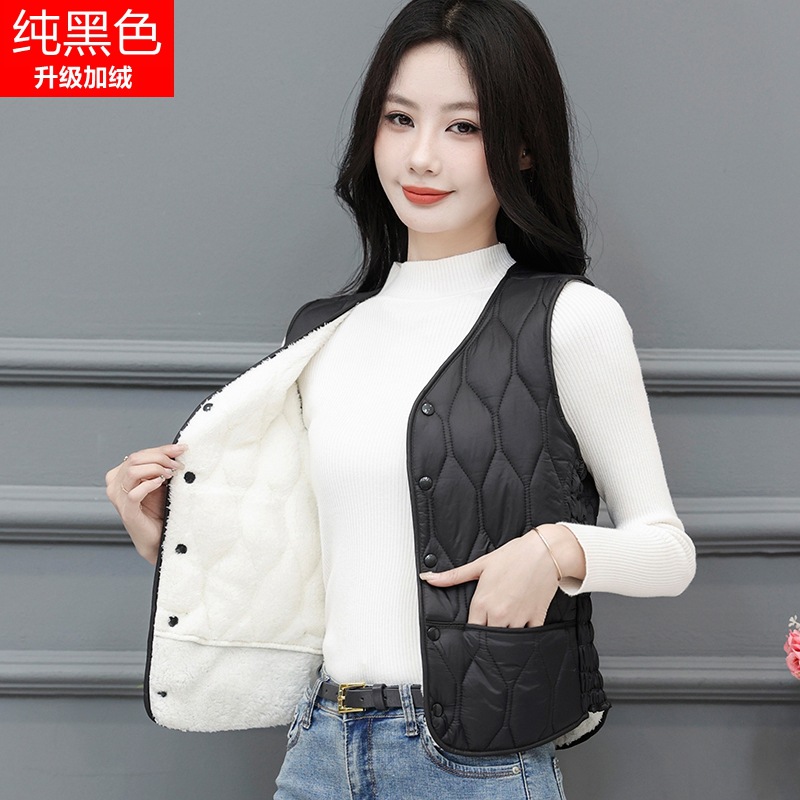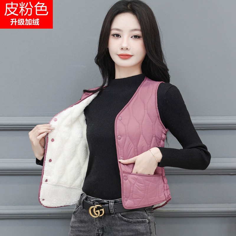 2025 가을, 겨울 새로운 스타일 다운 코튼 조끼 여성 플러스 벨벳 조끼 두꺼운 따뜻한 조끼 대형 밀착 조끼