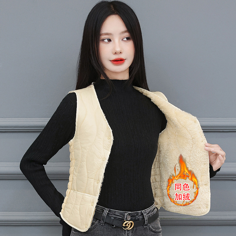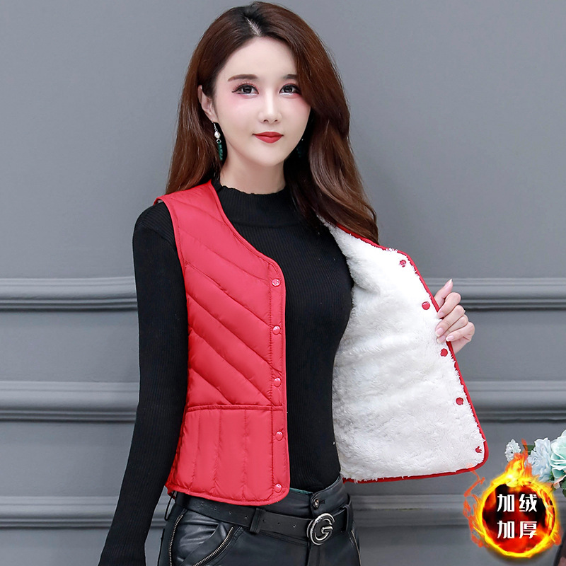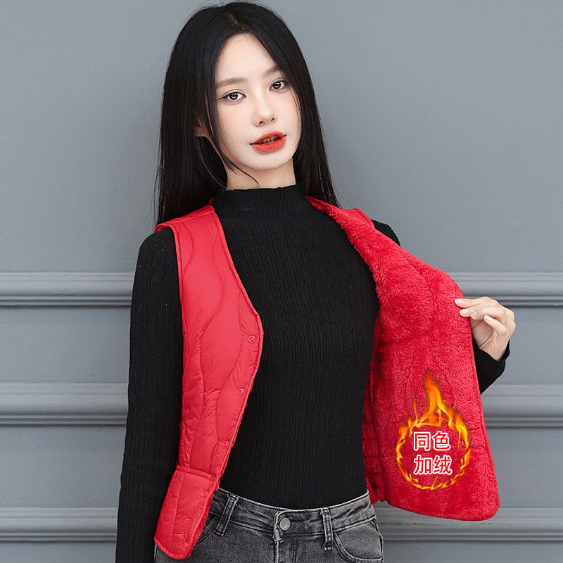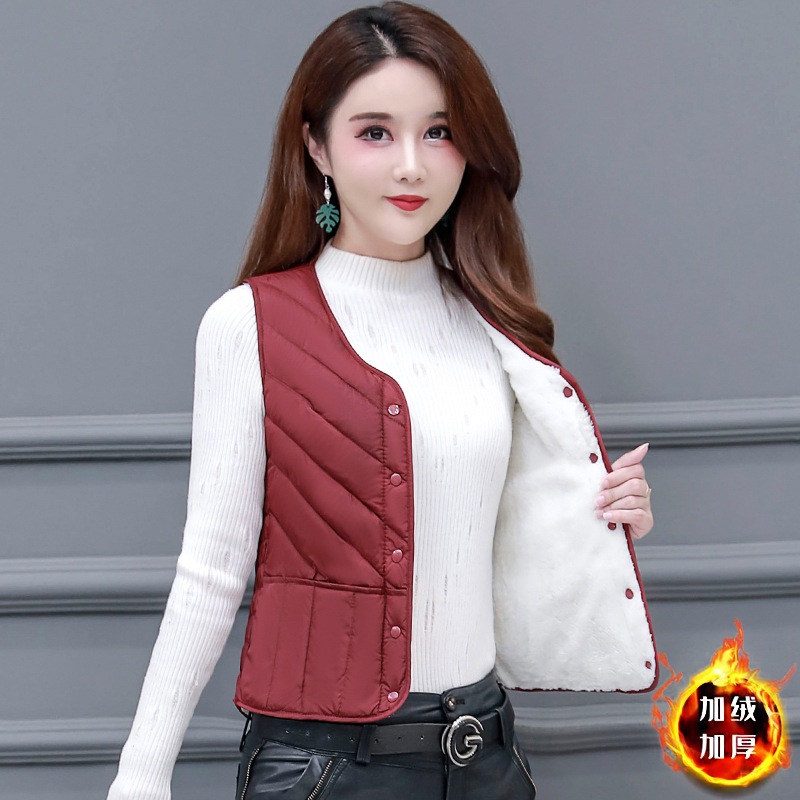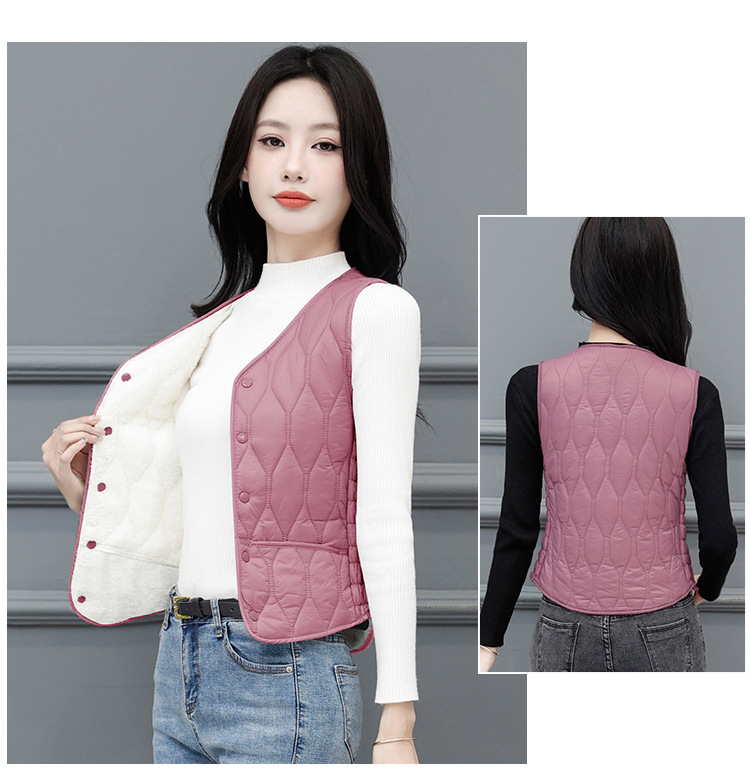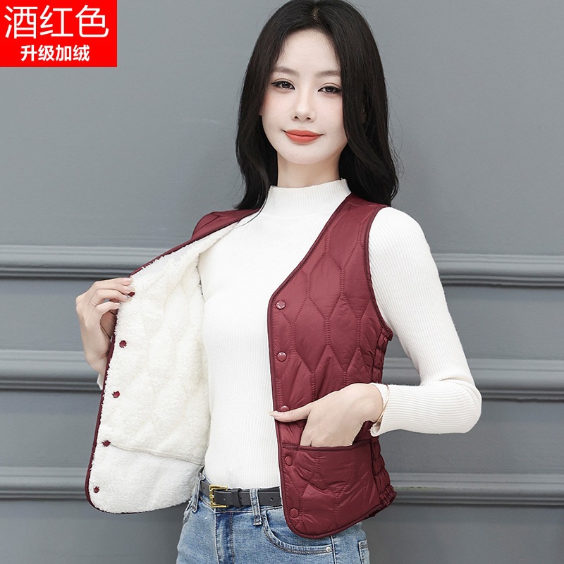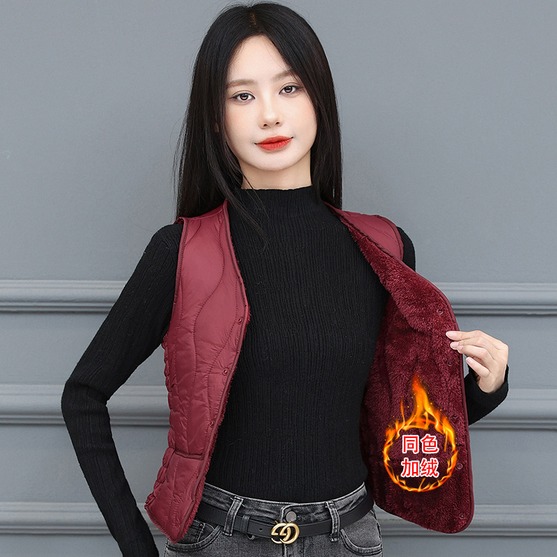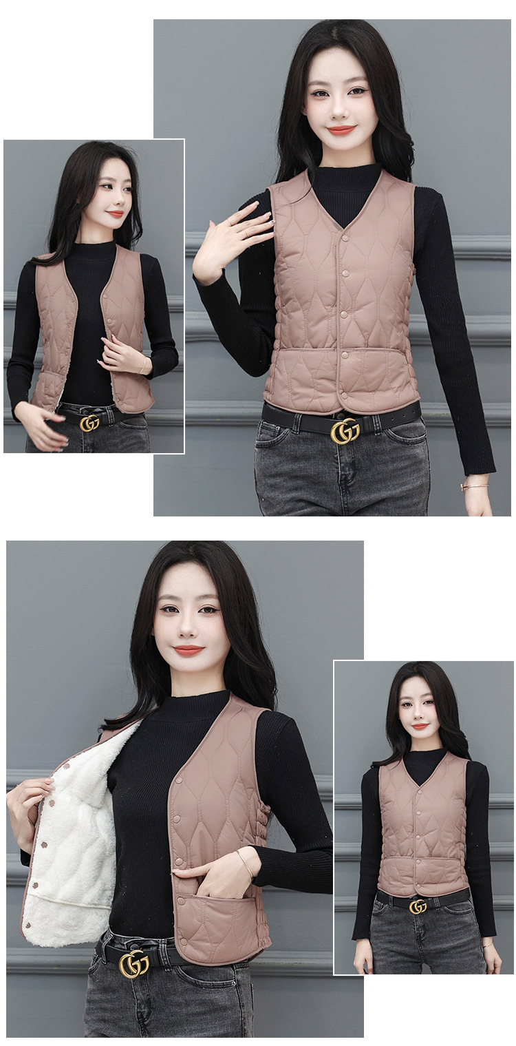 2025 가을, 겨울 새로운 스타일 다운 코튼 조끼 여성 플러스 벨벳 조끼 두꺼운 따뜻한 조끼 대형 밀착 조끼