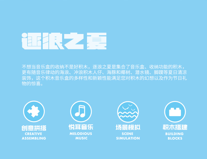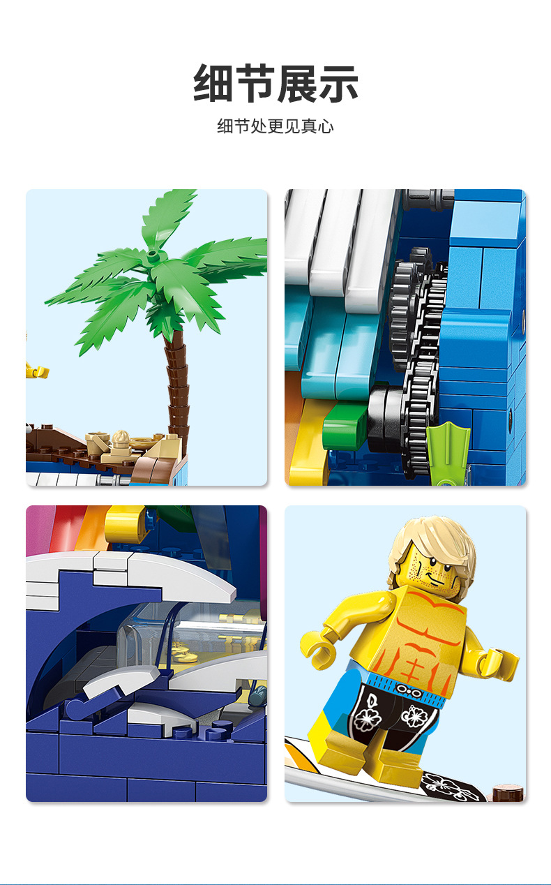 Kai Zhi 10009 웨이브 추격 여름 뮤직 박스 조립 모델 어린이 창의적 조립 된 빌딩 블록 조립 장난감 선물스토어 가기