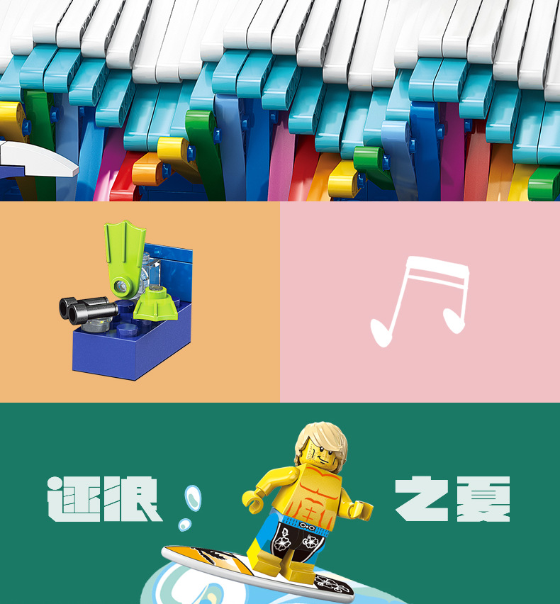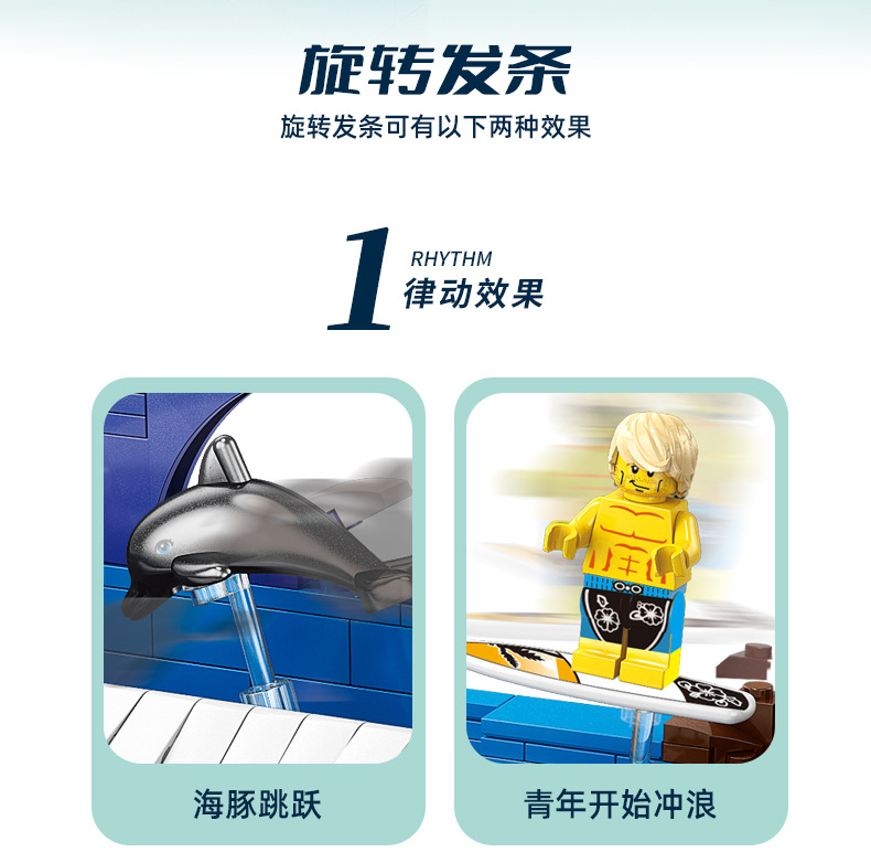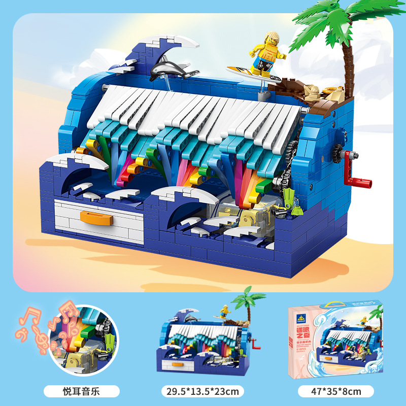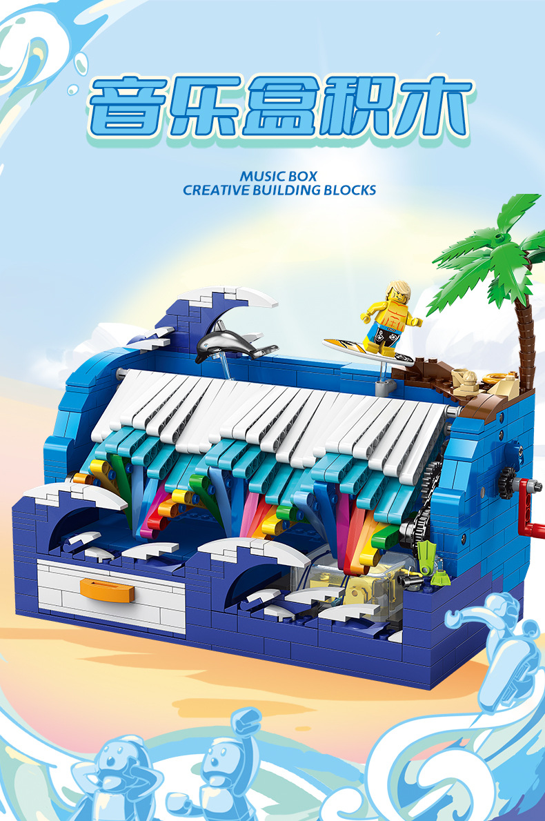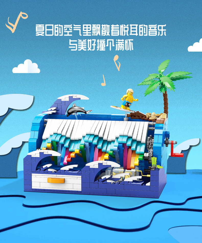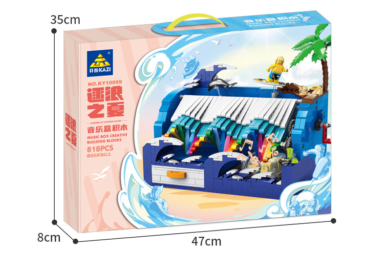 Kai Zhi 10009 웨이브 추격 여름 뮤직 박스 조립 모델 어린이 창의적 조립 된 빌딩 블록 조립 장난감 선물