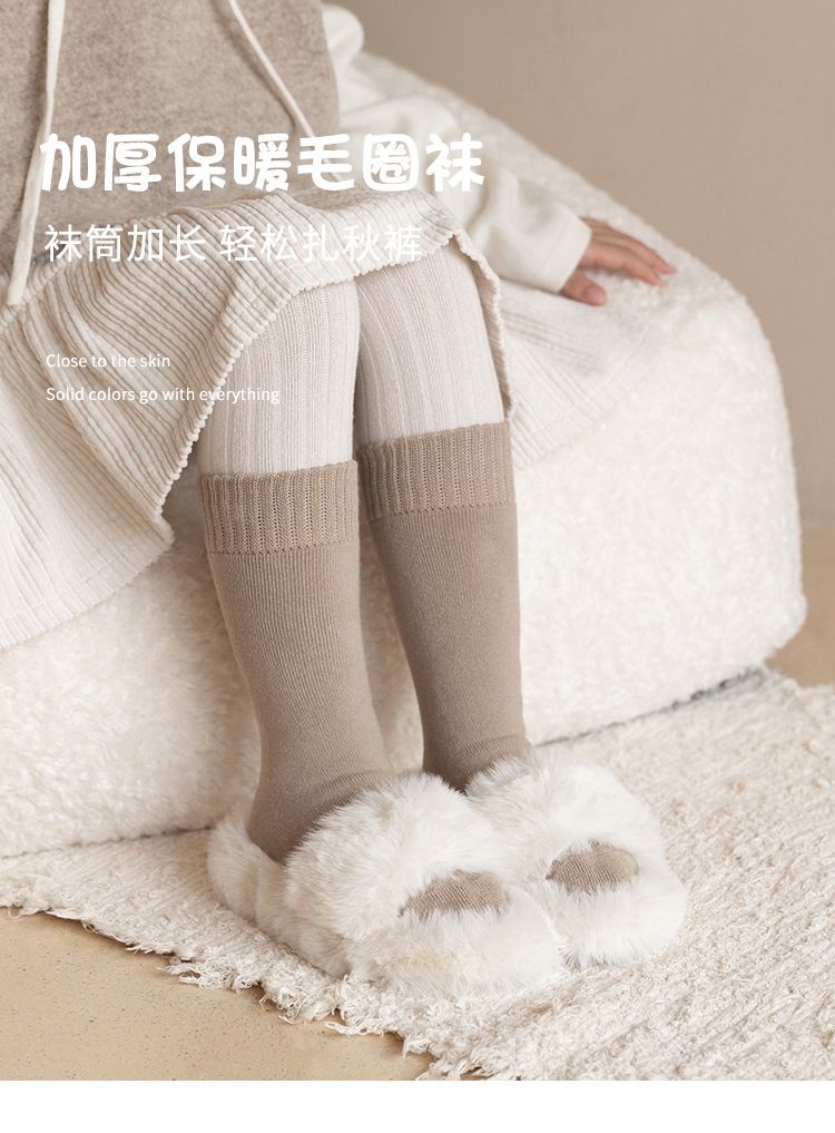겨울 어린이 양말 중간 튜브 테리 기모 가을과 겨울 두꺼운 양말 소년 소녀 아기 따뜻한 스타킹