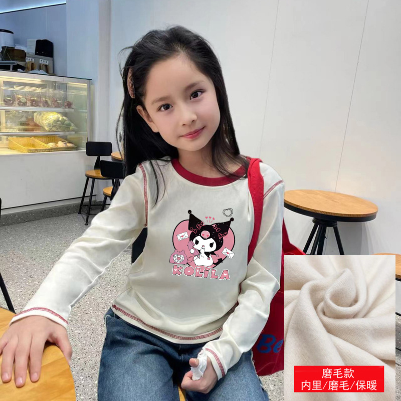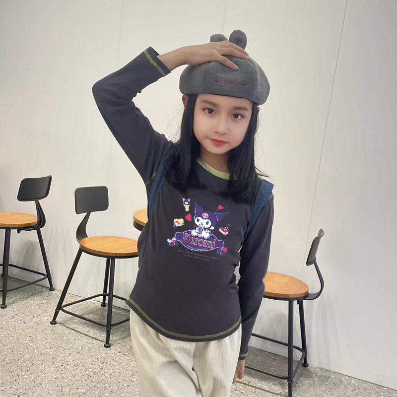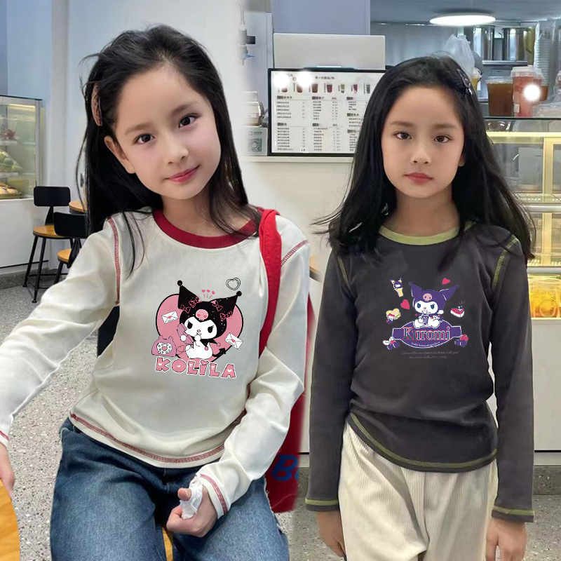 가을과 겨울 소녀 만화 Kulomi Pure Cotton 티셔츠 2024 새로운 여성 긴팔 티셔츠 어린이 크루 넥 탑 트렌디