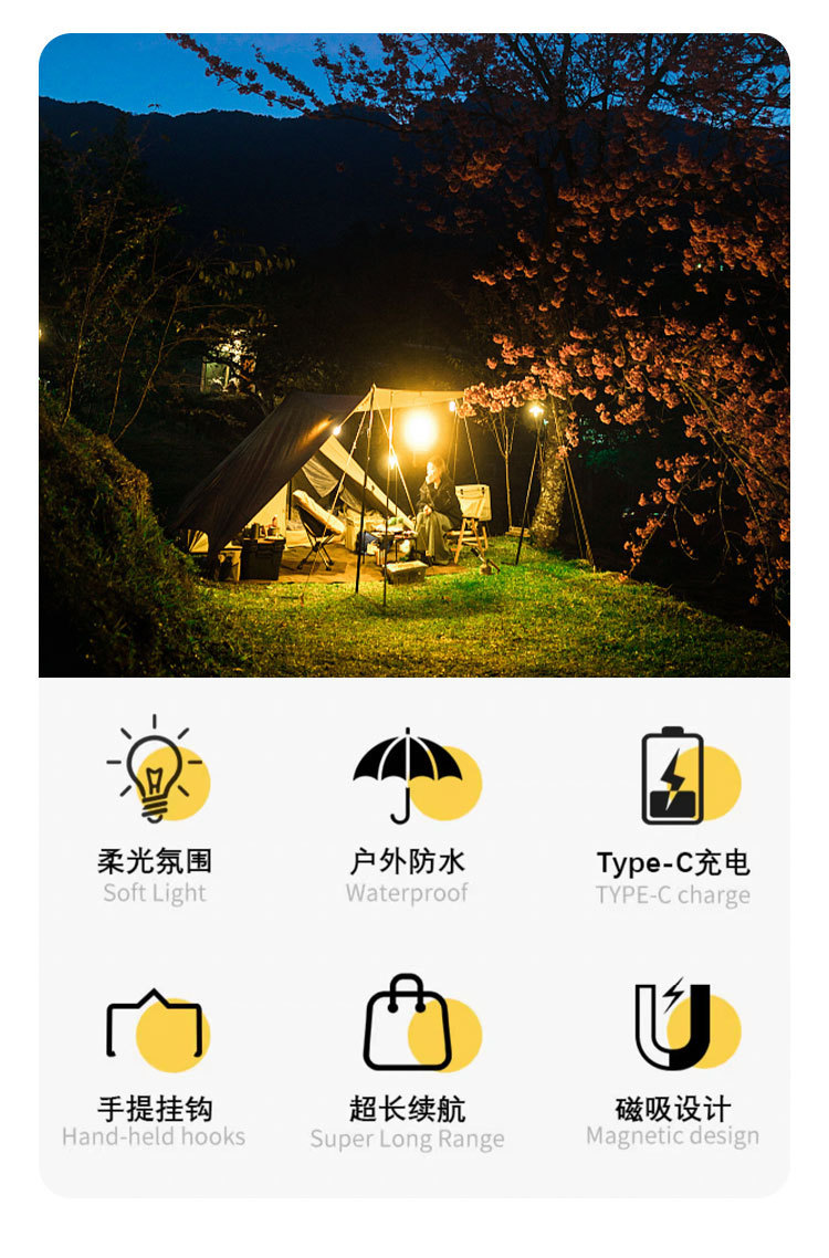 야외 캠핑 램프 다기능 휴대용 조명 분위기 램프 유형-c 충전 캠프 램프 자기 매력 텐트 램프스토어 가기