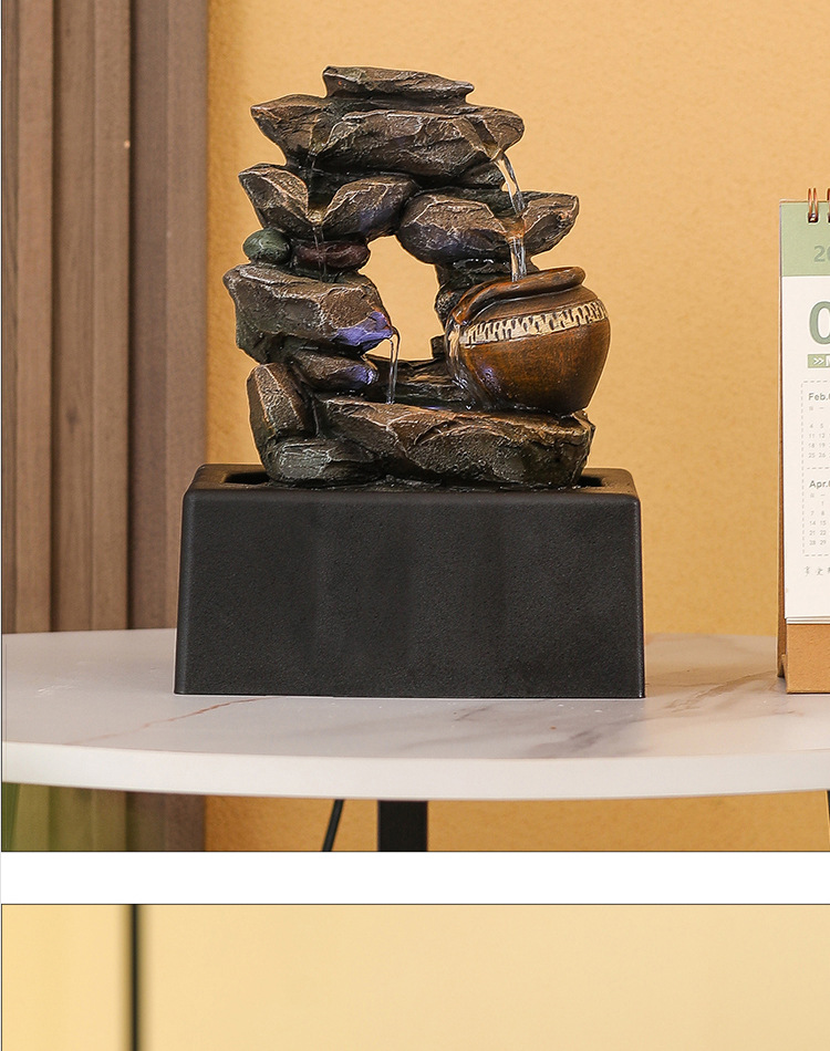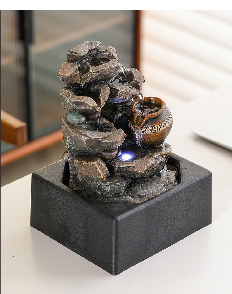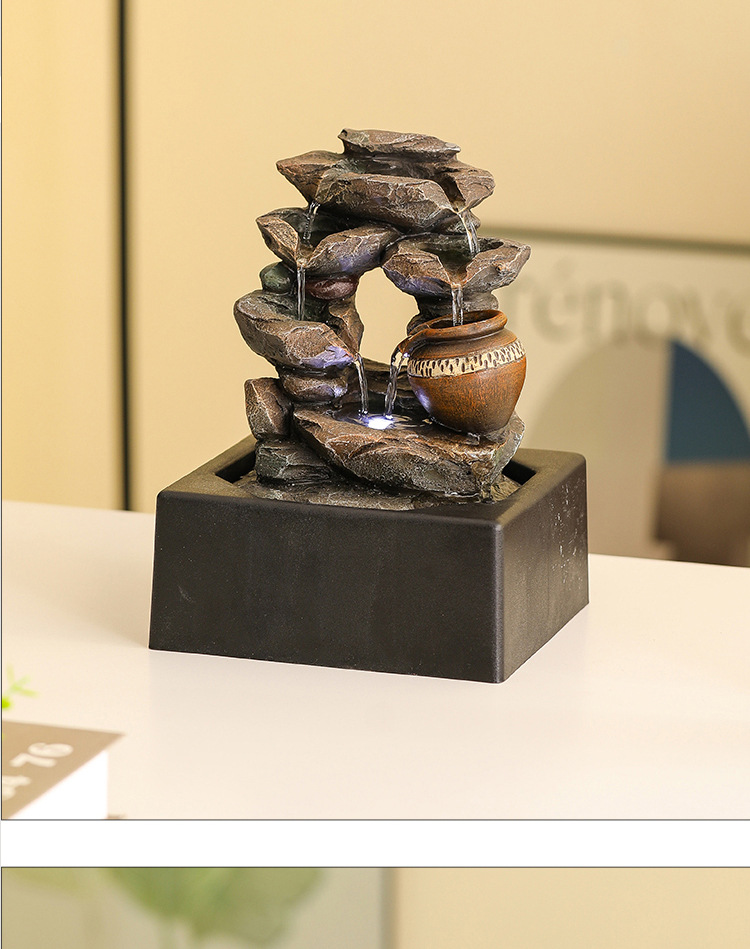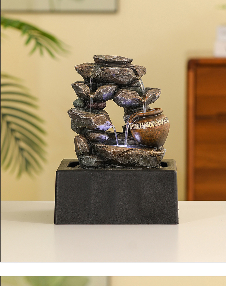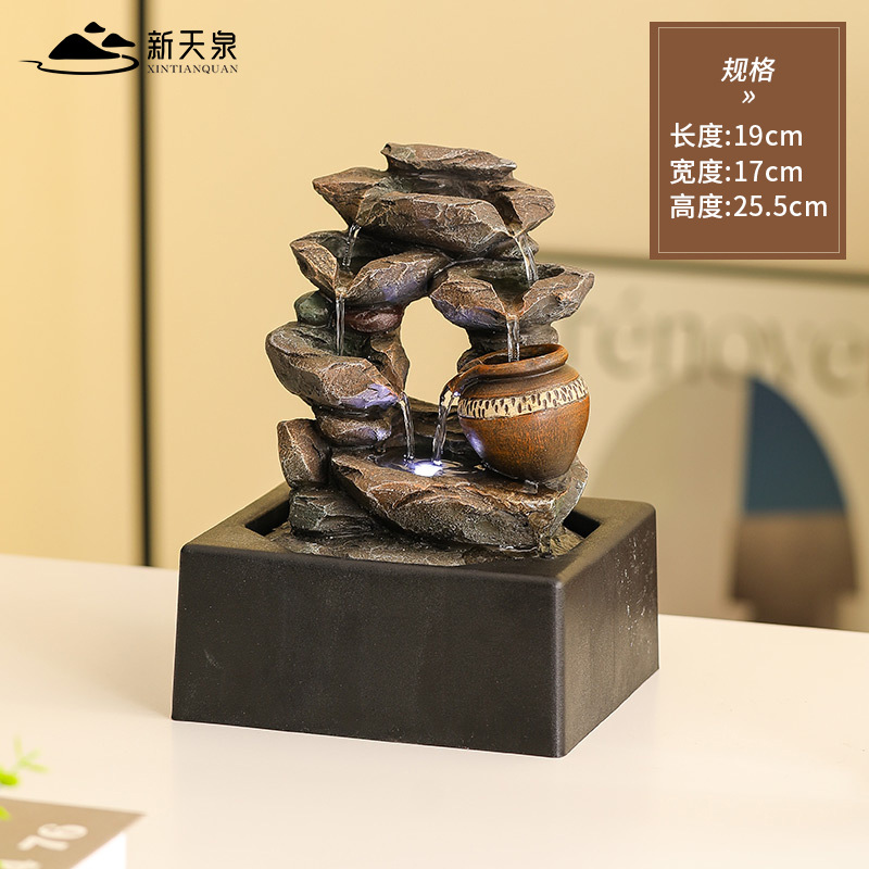 Xintianquan 루킹 물 풍경 장식 티 테이블 복고풍 데스크탑 작은 분수 실내 거실 순환 가습기