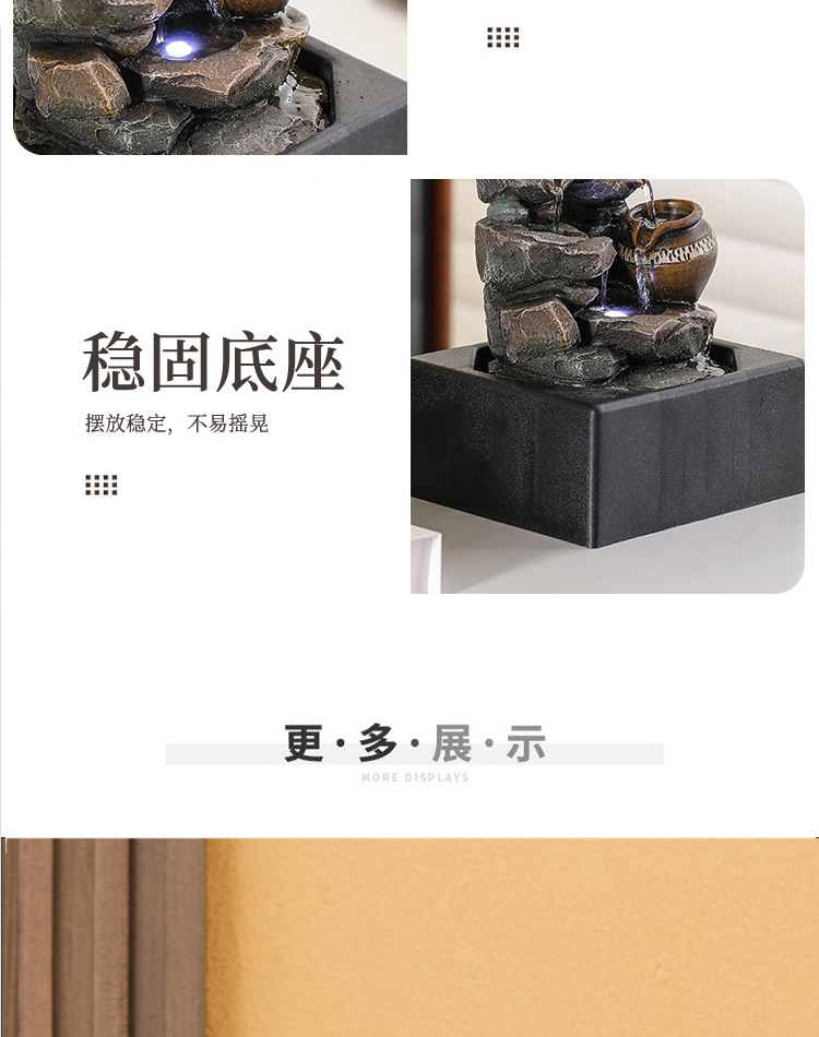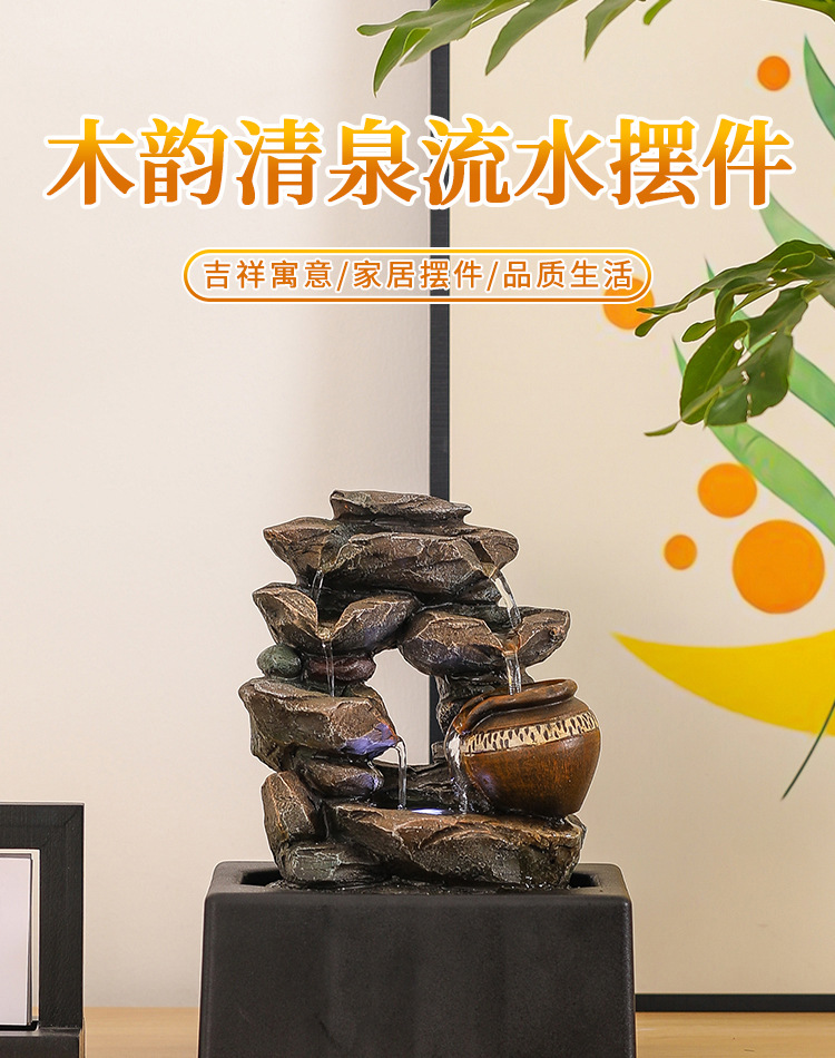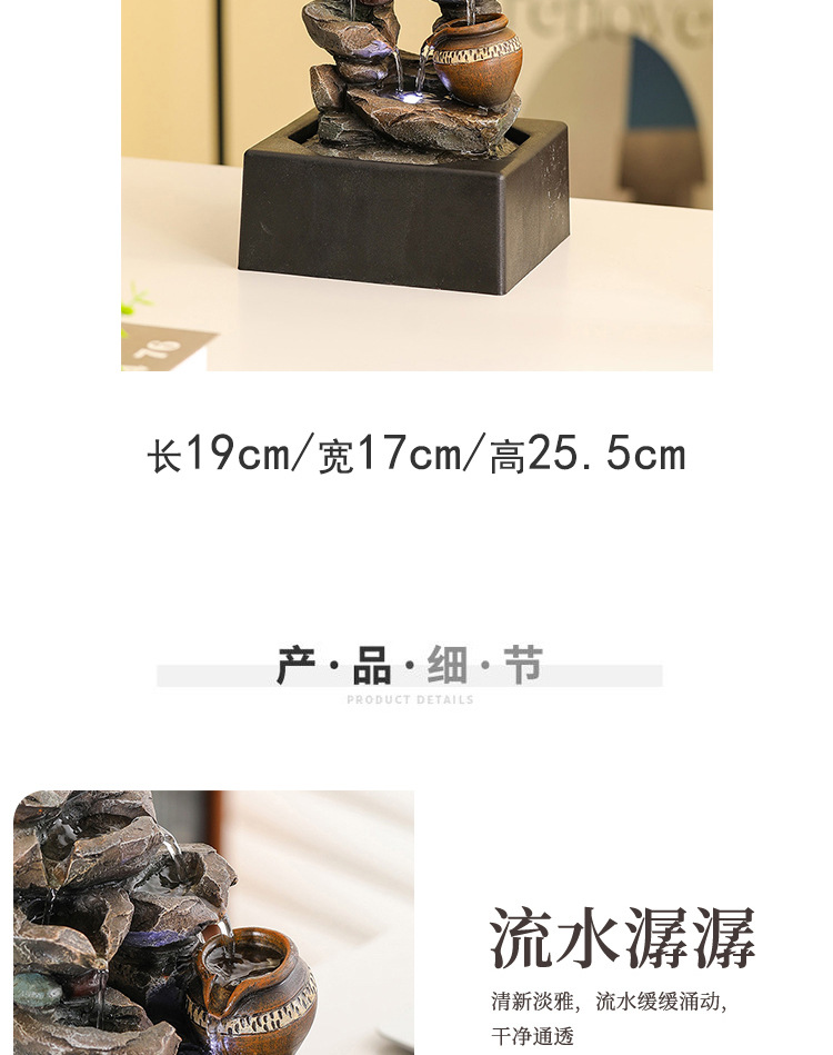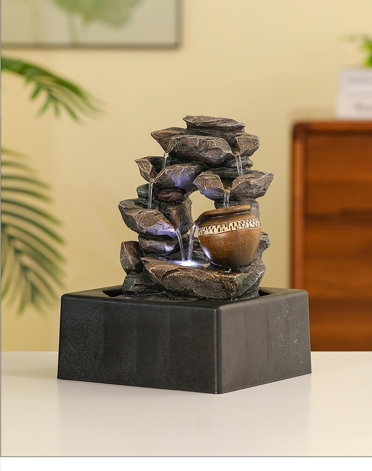 Xintianquan 루킹 물 풍경 장식 티 테이블 복고풍 데스크탑 작은 분수 실내 거실 순환 가습기