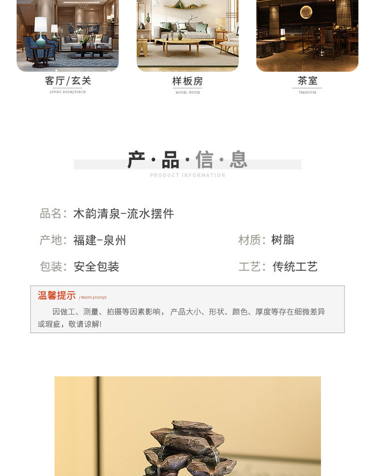 Xintianquan 루킹 물 풍경 장식 티 테이블 복고풍 데스크탑 작은 분수 실내 거실 순환 가습기스토어 가기