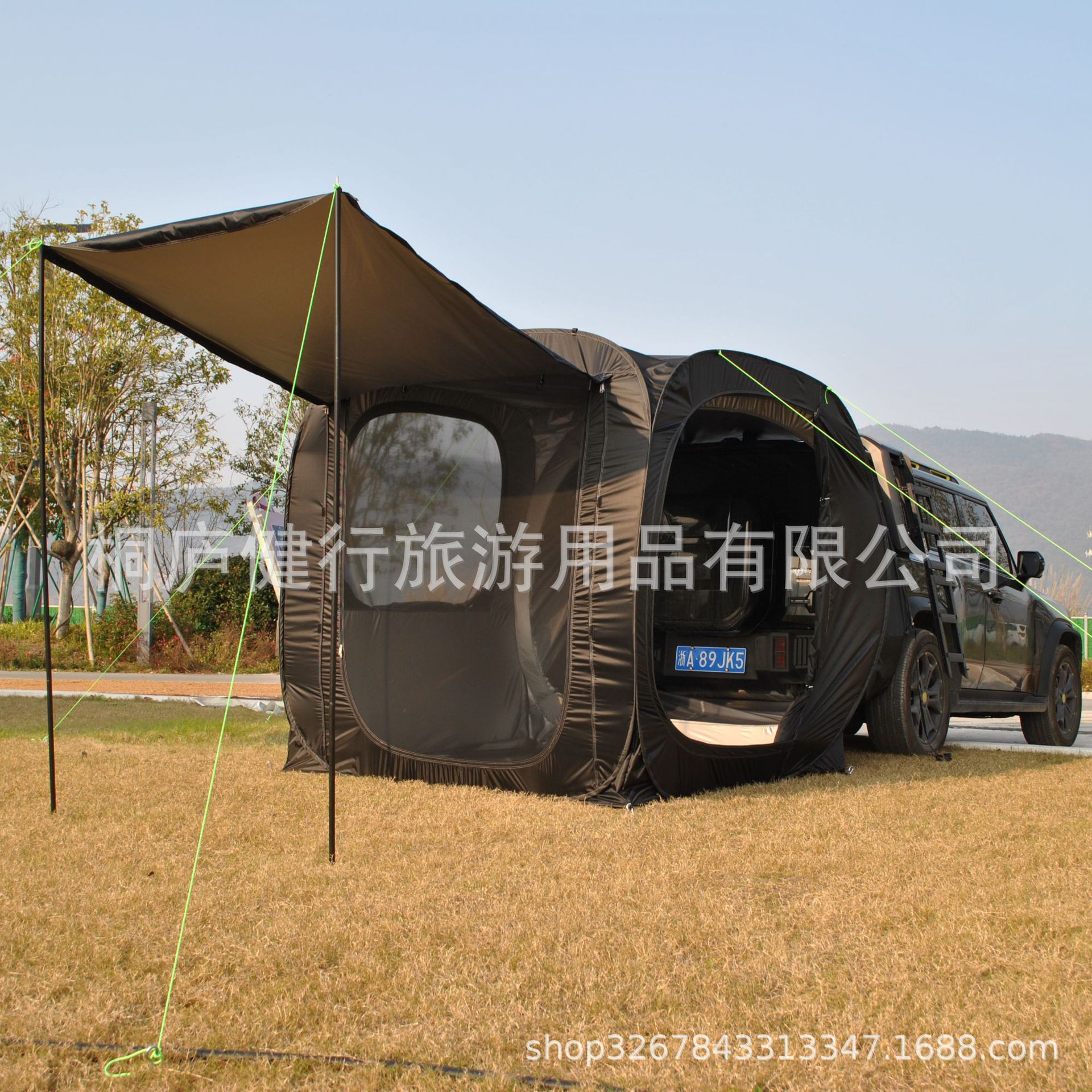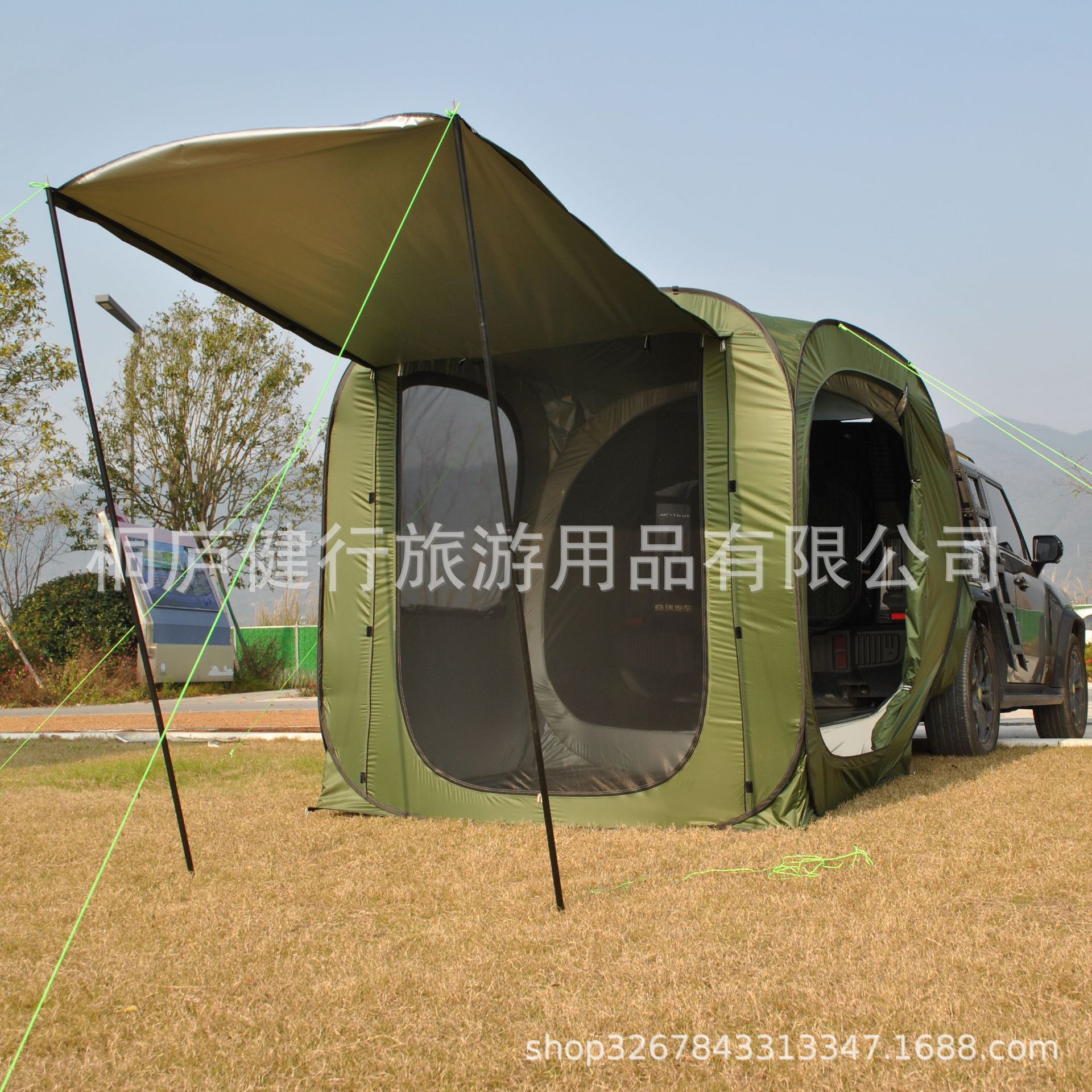 功能特点:这款帐篷放手后自动弹开可以秒开自动搭建,省去了小白不会搭建帐篷烦恼。帐篷主卧尺寸2米*2米*2.1米,可容纳4~5人使用,同时,配合天幕杆后,有一个长度月1.8米长,1.8m宽的延伸天幕,实现了一室一厅的超性价比效果。两侧一门一窗,且有防蚊纺纱隔绝,既保证透风透气的同时又可以多样玩法。车尾连接部分与车身紧密闭合,如果是电车,空调效果良好。