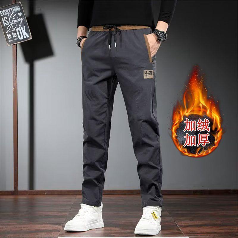 가을과 겨울 남자 바지 패션 캐주얼 바지 느슨한 올 매치 미드 웨이스트 슬림 핏 스트레치 스트레이트 남자 스포츠 바지스토어 가기