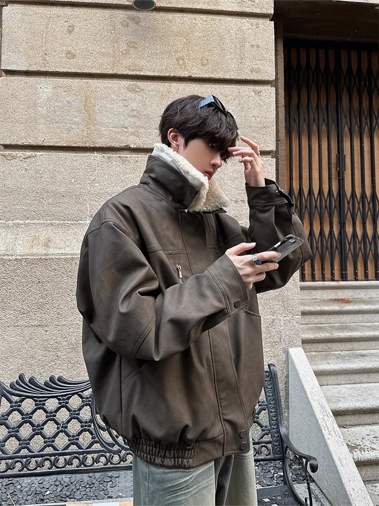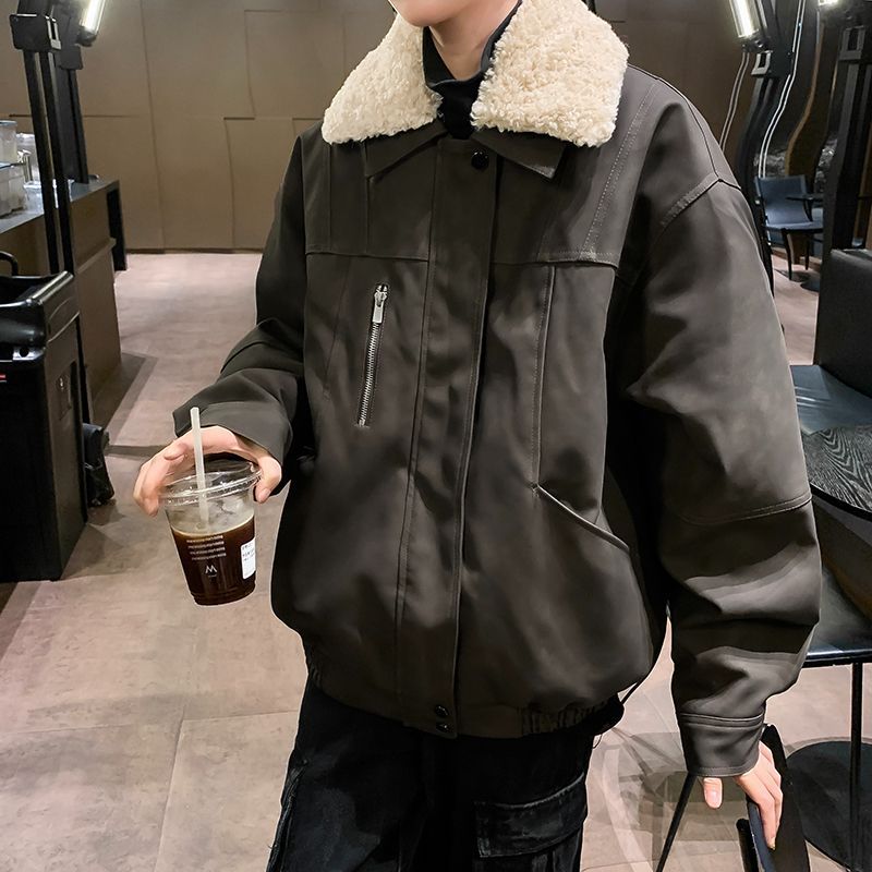 국경 간 새로운 복고풍 아메리칸 스타일 스탠드 옷깃 느슨한 코튼 패딩 의류 남성용 겨울 따뜻한 양모 칼라 재킷 두꺼운 재킷스토어 가기