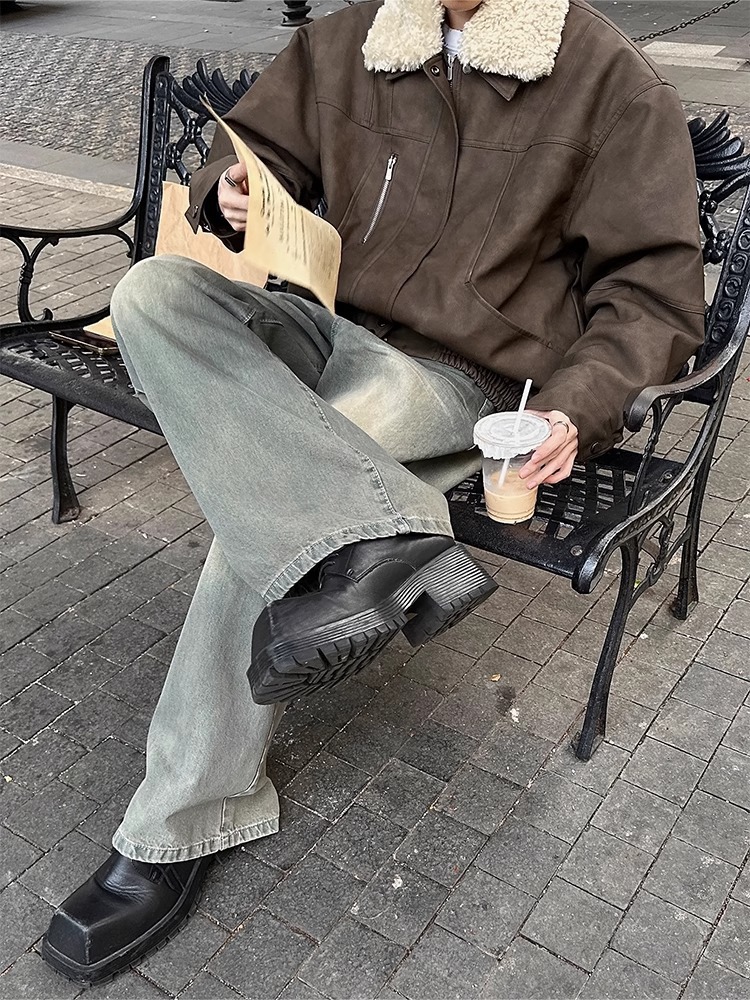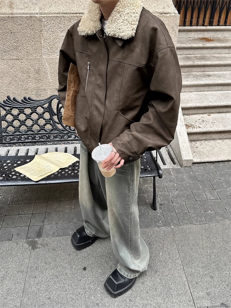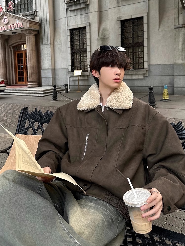 국경 간 새로운 복고풍 아메리칸 스타일 스탠드 옷깃 느슨한 코튼 패딩 의류 남성용 겨울 따뜻한 양모 칼라 재킷 두꺼운 재킷