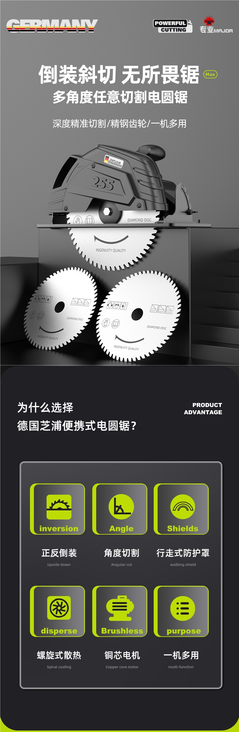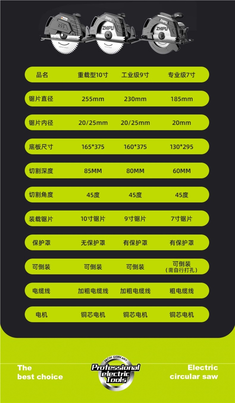 독일 Zhipu 전기 원형 톱 7 인치 9 인치 가정용 목공 휴대용 전기 톱 절단 디스크 톱 톱 테이블 다기능 링 톱