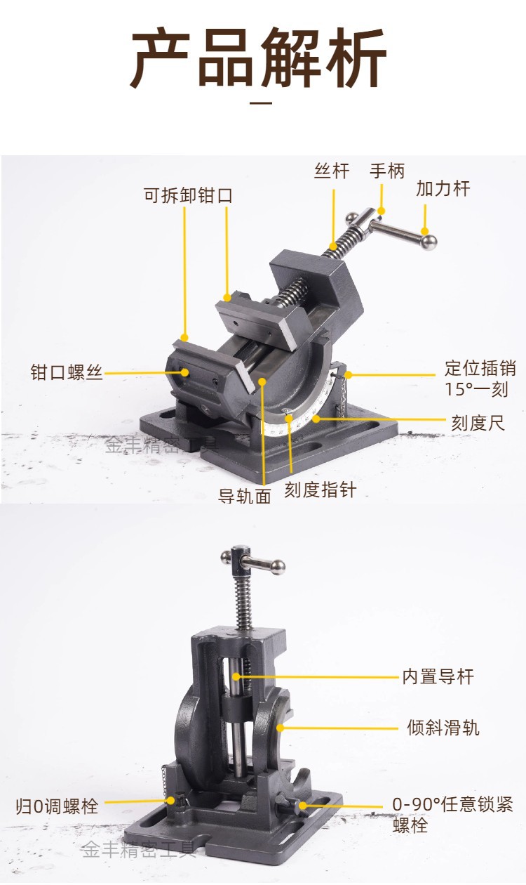 틸팅 가이드로드 타입 플랫 턱 앵글 바이스 0-90 도 틸트 드릴링 머신 벤치 바이스 3 인치 4 인치 벤치 드릴 클램프