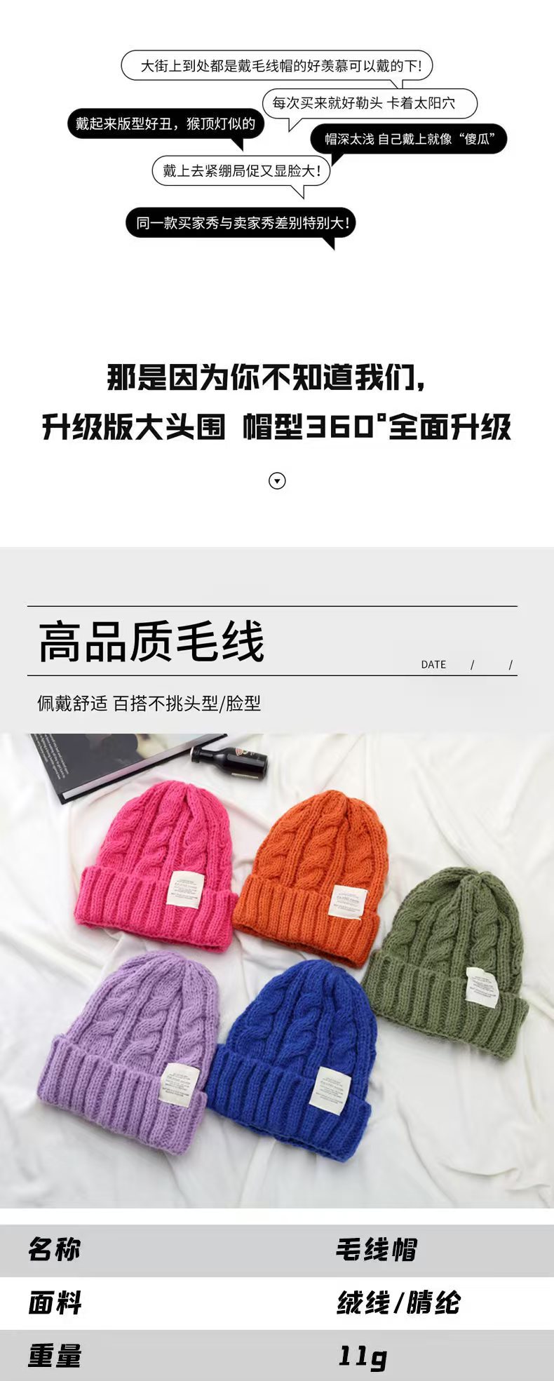 패션 니트 양모 모자 어린이 가을 겨울 두꺼운 따뜻한 일본과 한국 스타일 학생들은 얼굴 작은 귀여운 큰 머리를 보여줍니다