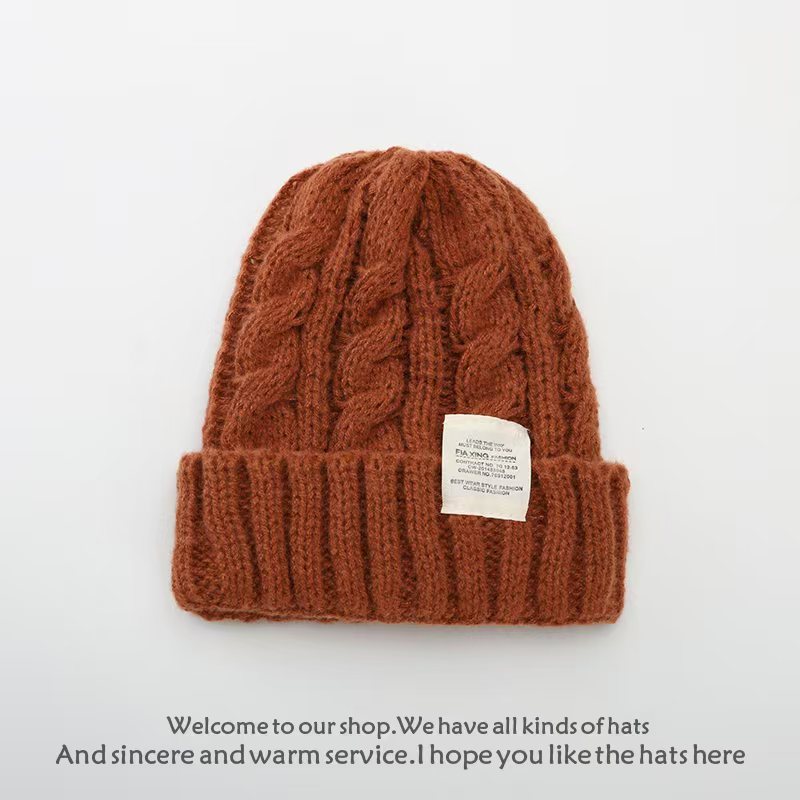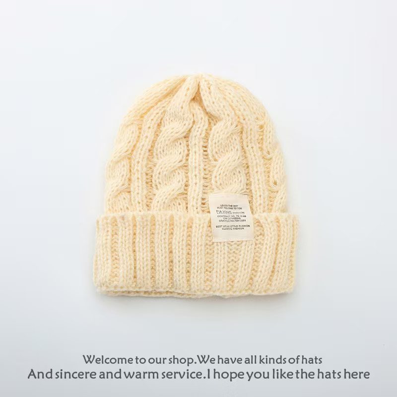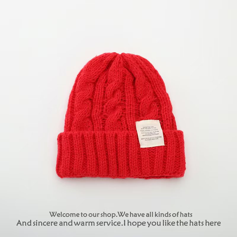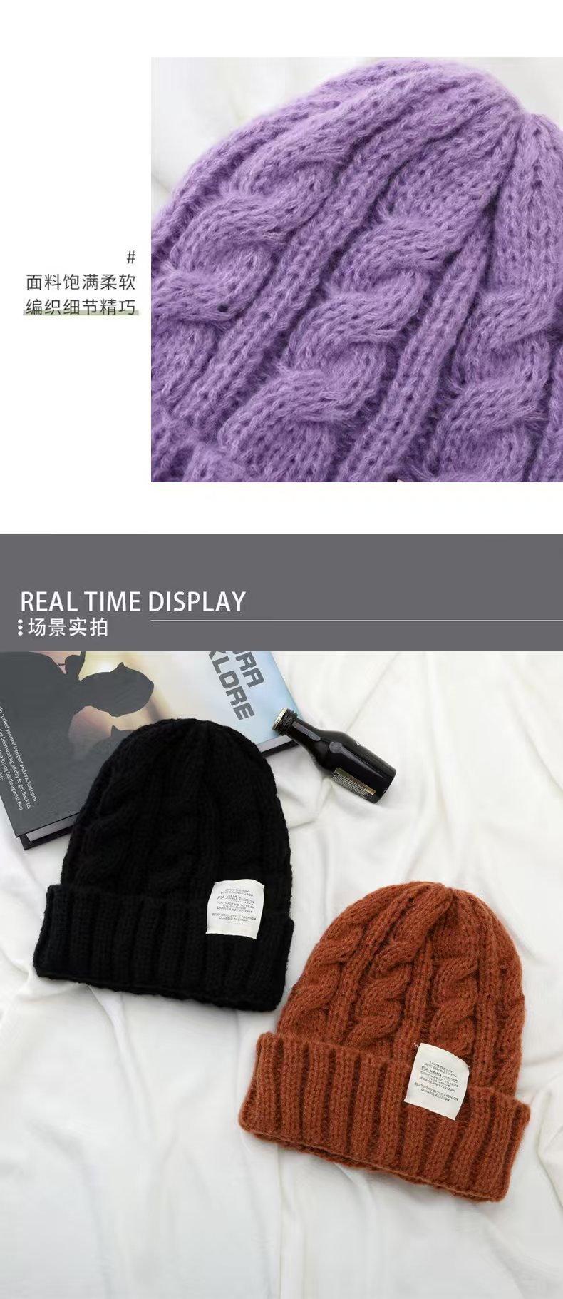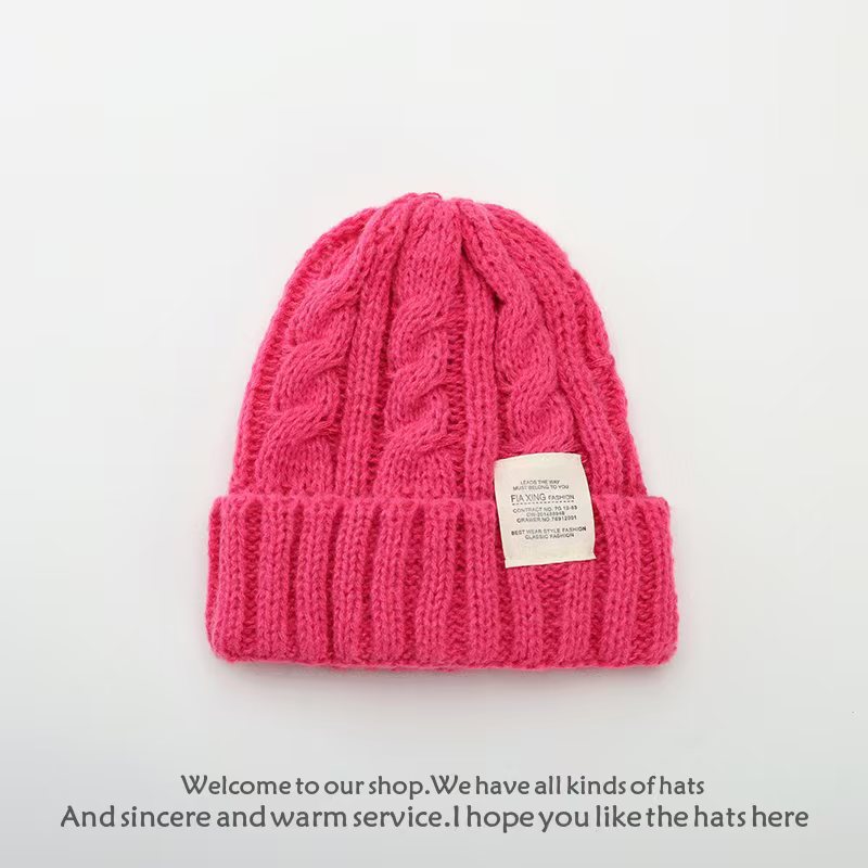 패션 니트 양모 모자 어린이 가을 겨울 두꺼운 따뜻한 일본과 한국 스타일 학생들은 얼굴 작은 귀여운 큰 머리를 보여줍니다스토어 가기