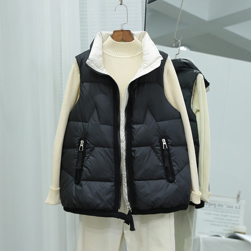 다운 재킷 여성 짧은 조끼 새로운 한국 스타일 수직 칼라 슬림 핏 패션 웨이스트 코트 다운 조끼 트렌디스토어 가기